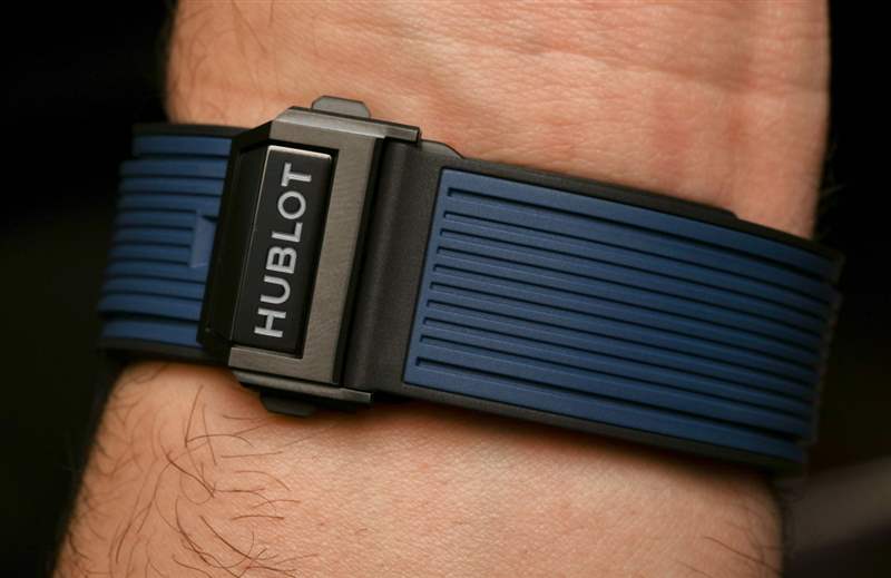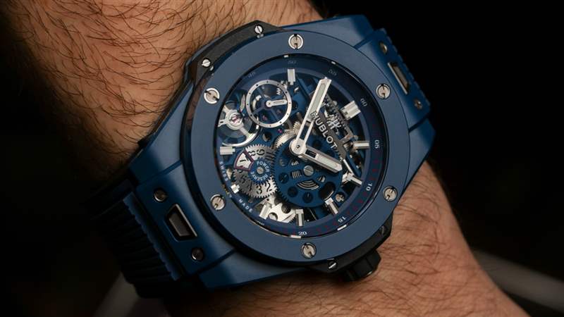Meca-10 寬 45 毫米,厚 15.95 毫米(防水深度達 100 米),存在于標準的現代一代 Big Bang 表殼中。我的一部分希望這個機芯有自己的外殼,但我完全同意它借用大爆炸的個性作為機制的框架。宇舶目前提供的 Big Bang Meca-10 有多種款式,包括黑色陶瓷、鈦金屬、魔力金、王金,以及現在的藍色陶瓷作為參考 414.EX.5123.RX。藍色仍然是豪華手表領域的熱銷品,因此預計未來幾年宇舶和幾乎所有其他手表品牌都會看到更多這種色調。藍色陶瓷對于陶瓷手表來說仍然是一種相對不常見的顏色,因此現在這樣的手表具有明顯的新奇價值。