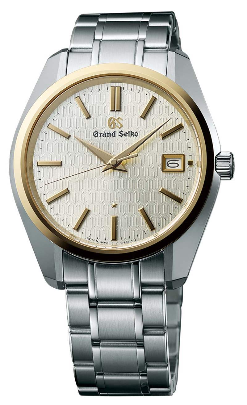 兩款限量版 9F 25 周年紀念腕表中的第二款是 Grand Seiko SBGV238。更限量(限量 600 枚),這款手表在視覺上與 SBGT241 不同,這有點奇怪,因為它們是在同一個動作中首次亮相的。SBGV238 采用精鋼和 18ct 黃金表殼,寬 40 毫米,厚 10 毫米(防水深度達 100 米)。雖然大部分表殼和表鏈都是鋼制的,但這款表款的金色表圈配有匹配的金色指針和時標。此外,與其他型號不同的是,這款表盤只有日期——但同樣酷炫的 25 周年紀念表盤。兩款手表的表盤上方都是 AR 涂層藍寶石水晶。根據 Seiko 的說法,SBGV238 手表的表殼靈感來自 1967 年 Grand Seiko 44GS(Grand Seiko 系列中的其他手表也有這種表殼設計)。