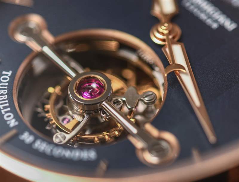 從技術角度來看,自制的帕瑪強尼 PF501 手動上鏈機芯有一個不常見的特點。那就是每 30 秒旋轉一次的陀飛輪。Parmigiani 稱其為“獨家 30 秒陀飛輪”,盡管我不確定(除了機芯本身)完全排除其他配備 30 秒陀飛輪的手表的來源。