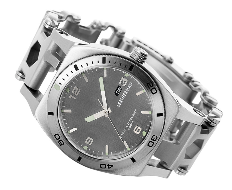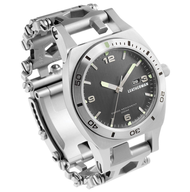 Leatherman Tread 作為獨立工具手鏈或兼容表殼的手表手鏈非常受歡迎,Leatherman 為 Tread Tempo 重新設計了自己的表殼。奇怪的是,Leatherman 沒有提供有關表殼寬度的信息,但它是鋼制的,防水深度達 200 米,有藍寶石水晶,寬度可能約為 43-44 毫米。廣告訊息廣告信息結束
