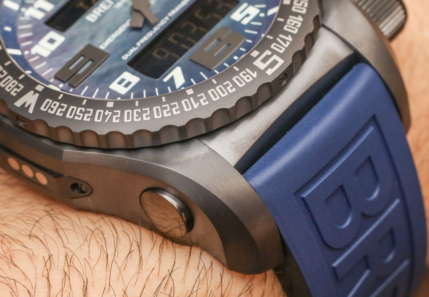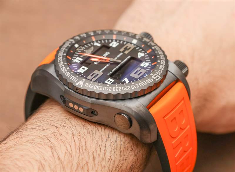 51 毫米寬和 21.6 毫米厚是一款適合大多數(shù)手腕定期佩戴的鐘表野獸。表殼采用高級(jí)鈦金屬制成,重量不大,約 144 克(實(shí)際重量取決于您是佩戴在配套的鈦金屬表鏈還是橡膠表帶上)。話(huà)雖如此,除非你真的很喜歡這種尺寸和感覺(jué),而且你可以穿著普通的休閑裝來(lái)摘下這款手表,否則百年靈緊急情況 II 將主要用于“周末戰(zhàn)士裝”,或者在可用時(shí)用于嚴(yán)肅的冒險(xiǎn)用途PLB 功能被認(rèn)為是有用的。