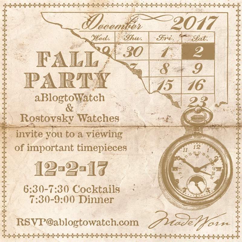 參加 2017 年 aBlogtoWatch 秋季派對的客人將享受專屬空間、頂級美食、精心調配的飲品和良好的陪伴。我們知道你們都會喜歡的,我們期待在那里看到那些在 RSVP 列表中列出的人。總而言之,aBlogtoWatch with Made Worn 和 Rostovsky Watches 派對將于 2017 年 12 月 2 日星期六在加利福尼亞州西好萊塢的 Made Worn 舉行。