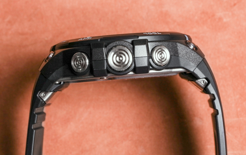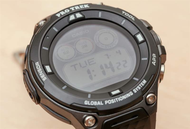 為了讓 WSD-F20 感覺更像 Pro Trek 手表,卡西歐重新設(shè)計(jì)了前擋板,我實(shí)際上同意與原始 WSD-F10 更簡(jiǎn)單的表殼相比更具吸引力。維護(hù)的是手表的各種傳感器,例如指南針和氣壓計(jì)/高度計(jì)模塊以及添加的 GPS 模塊。這不僅使卡西歐 WSD-F20 更符合其他競(jìng)爭(zhēng)性智能手表,而且有助于手表成為 Pro Trek 真正需要的實(shí)際探索手表。