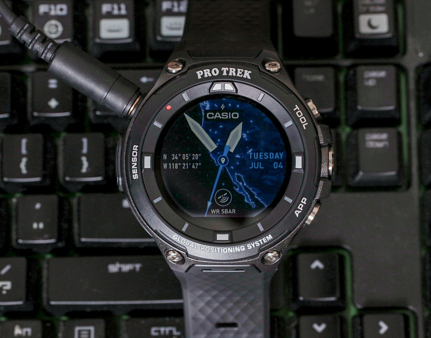 是的,您可以在現(xiàn)場(chǎng)為它們充電,但這并不總是一件容易的事。也許我對(duì) WSD-F20(以及之前的型號(hào))最大的抱怨是卡西歐似乎忽略了這樣一個(gè)事實(shí),即人們可能希望在穩(wěn)定的表面以外的地方為這些設(shè)備充電。WSD-F20 的充電速度足夠快(沒有智能手表電池特別大),但為了給它充電,您仍然需要依靠相對(duì)脆弱的磁力線。如果您想暫時(shí)取下手表并說通過背包或包中的外部電池(如今許多人攜帶)為它充電,該系統(tǒng)根本無法很好地工作。是的,充電線可以工作,