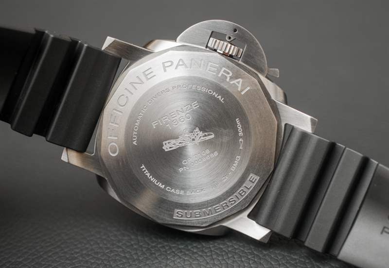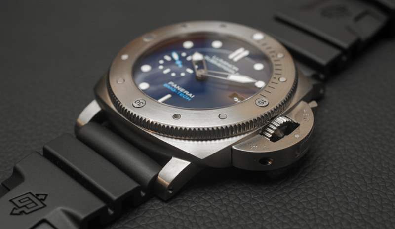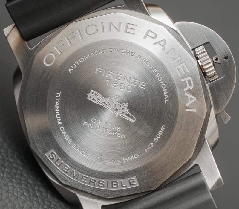 其他品牌使用各種類型的合金,例如表殼。我記得 Audemars Piguet 有時會使用一種他們稱之為“Cermet”(陶瓷金屬)的材料來制作表圈,也可能是整個表殼的材料。金屬陶瓷的優點與 BMG-TECH 相似,因為它像陶瓷一樣堅韌,但具有金屬的視覺外觀。金屬陶瓷的顏色有點深,所以它讓我相信塊狀金屬玻璃對于這款沛納海 PAM 692 來說可能有點不同。表背是鈦,這也恰好是表殼中最多的部分細節。我的直覺告訴我,雖然大塊金屬玻璃是一種引人注目的材料,但它比大多數金屬更難加工(因此也更昂貴)。
