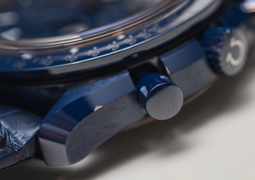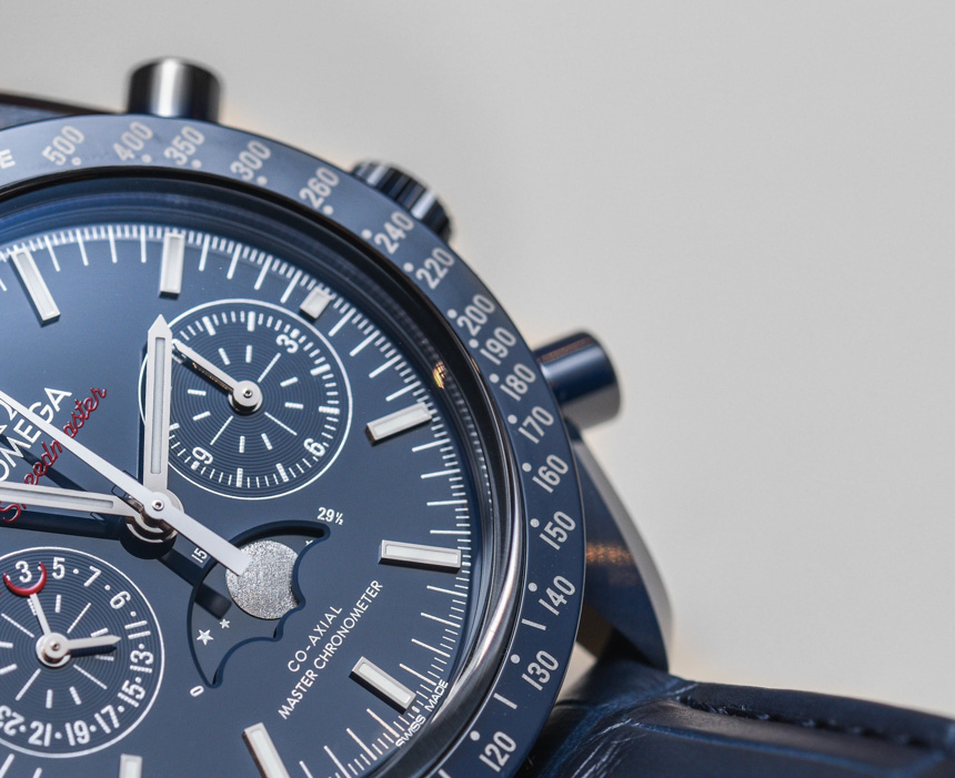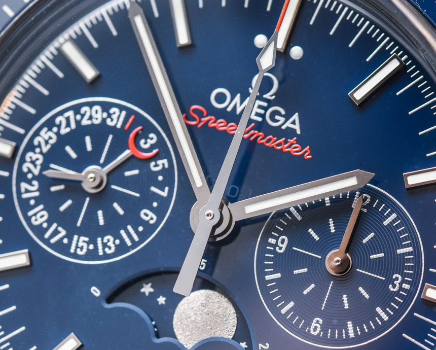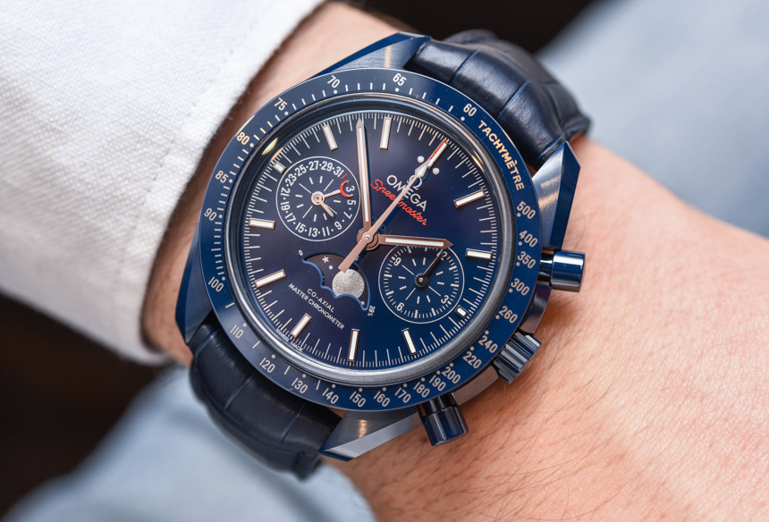 還要記住,藍色表盤和表圈樣式在月球 Speedmaster Moonphase 的藍色側面與我之前評論并鏈接到上面的鋼殼表盤不同。精鋼款的表盤是拋光的太陽紋金屬藍色,而這款表款的藍色陶瓷表盤則呈現出更啞光的深藍色。我個人認為,月之藍方將是大多數人更喜歡的版本——當試圖弄清楚要獲得什么藍色 Speedmaster 時。