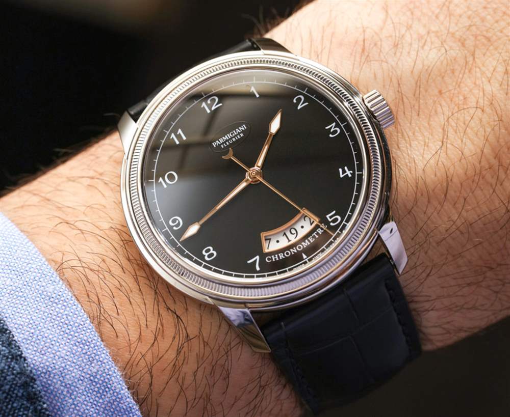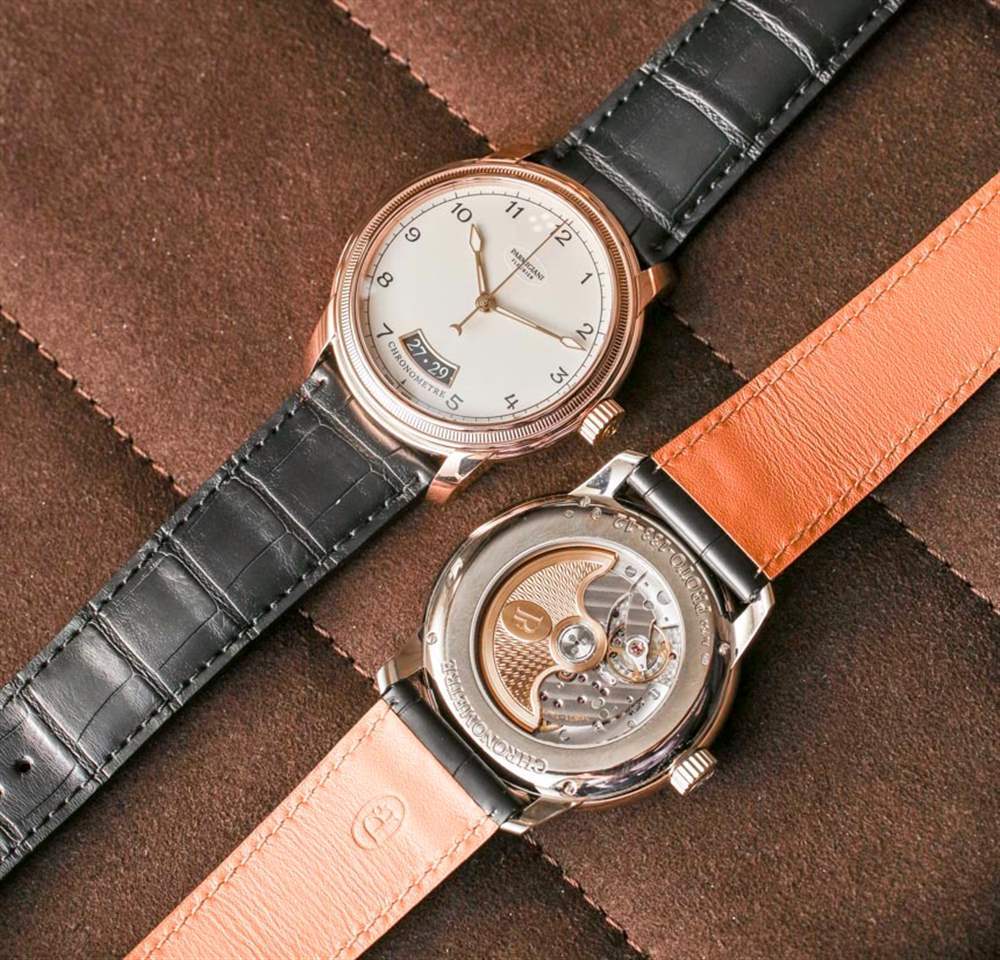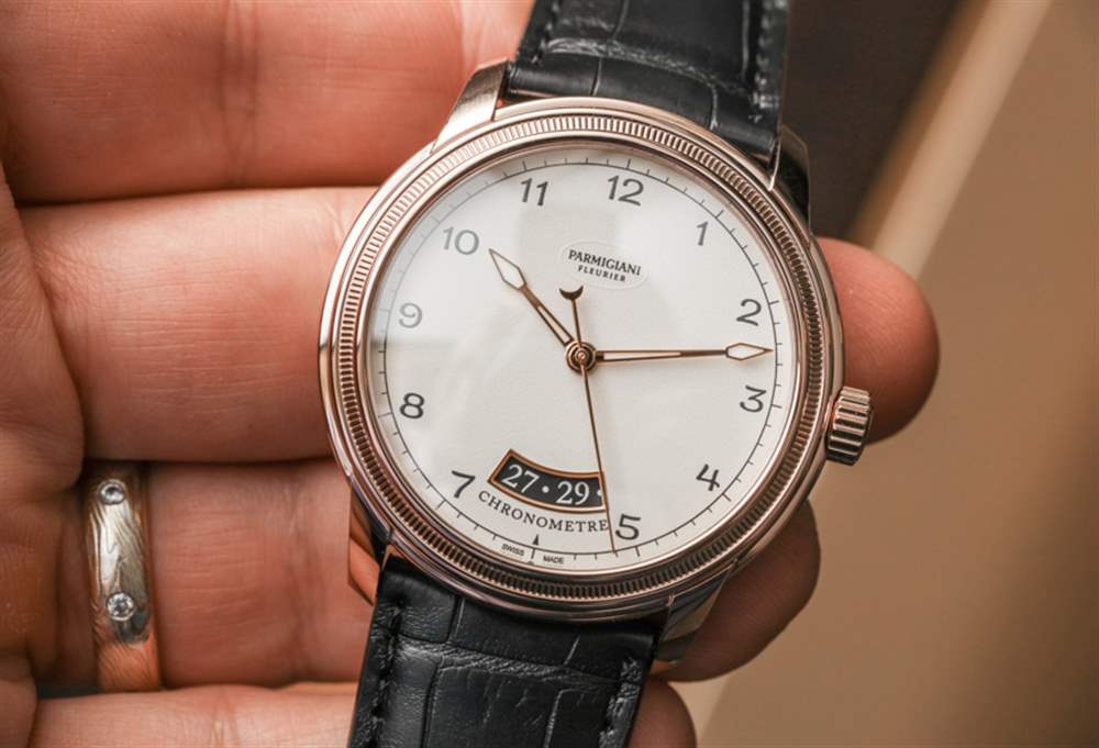 Parmigiani 提供 18k 白金或紅金表殼。每個金色版本都有黑色或白色表盤顏色可供選擇。所有型號都有金色指針,我認為這是一個很好的觸感。我們還看到一個“打開”的日期窗口。我通常不是這些的忠實粉絲,但這里的執行還不錯,似乎給日期(位于 6 點鐘上方)提供了更多的整體設計的被動目的。日期窗口下方是表盤上手表的“Chronometre”名稱,這是一個我不介意的設計細節。