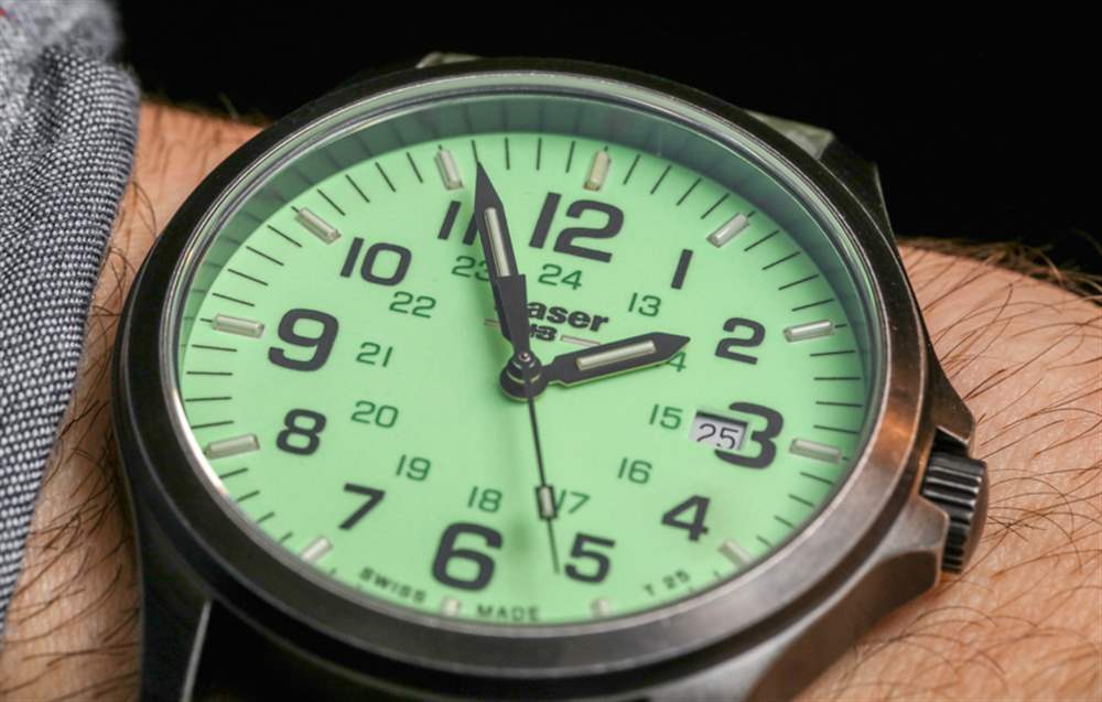 對于那些要求手表具有出色易讀性的人來說,像這樣的高對比度表盤設計非常有效——而且它不需要像“黑白”那樣無聊。此外,傳統的光動力 Super-LumiNova 與自發光的氚氣管相結合,形成了一種難以超越的組合。Traser 最近一直在尋求提高他們的知名度,我很想知道他們將如何做到這一點。該品牌早于 Luminox 等競爭對手(其氣管也來自瑞士 MB-Microtec),但從營銷角度來看,大部分情況下都相當安靜。