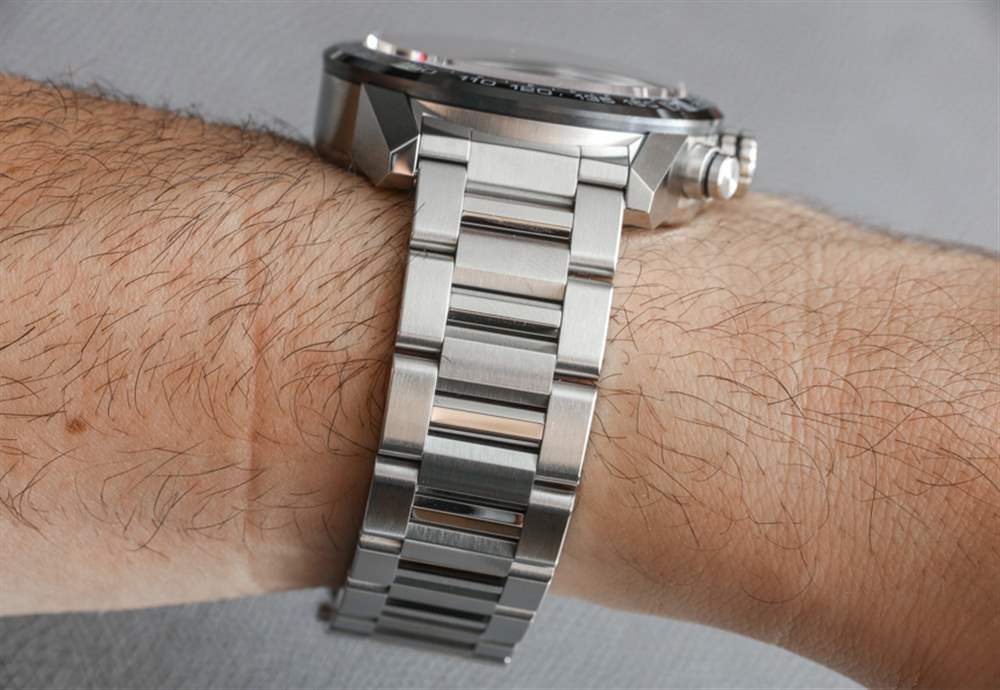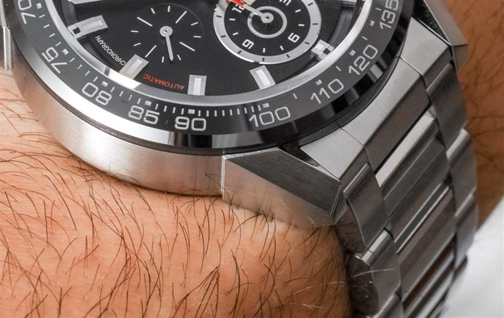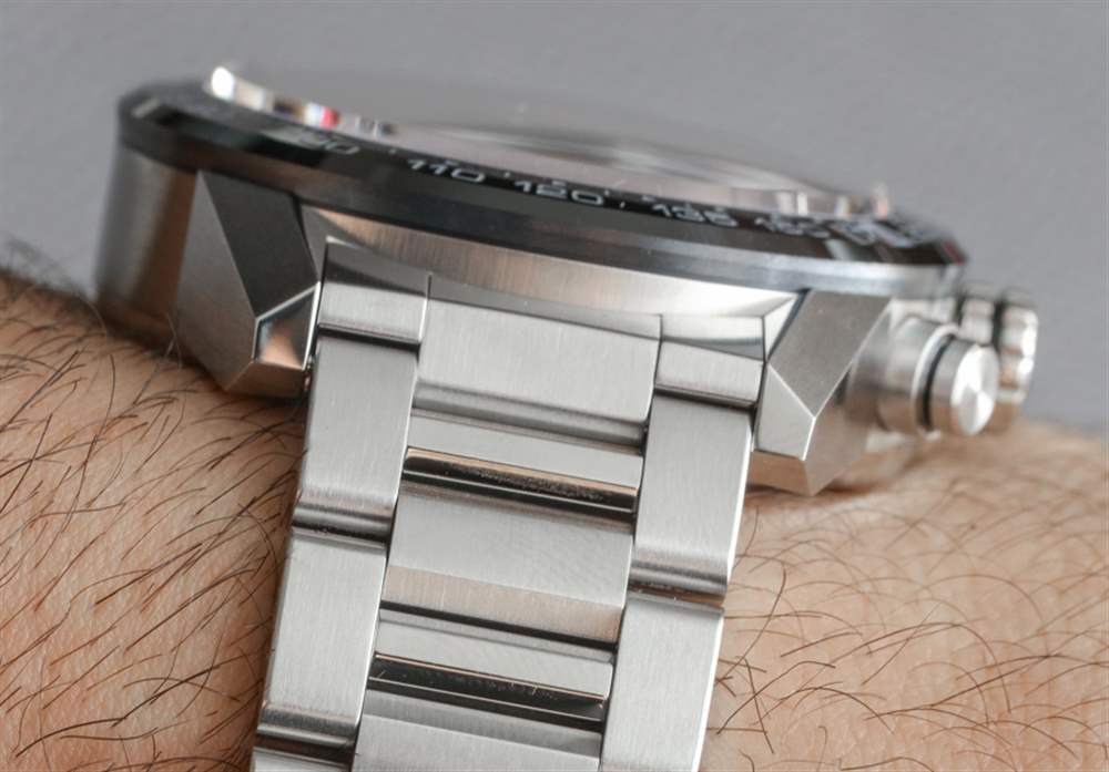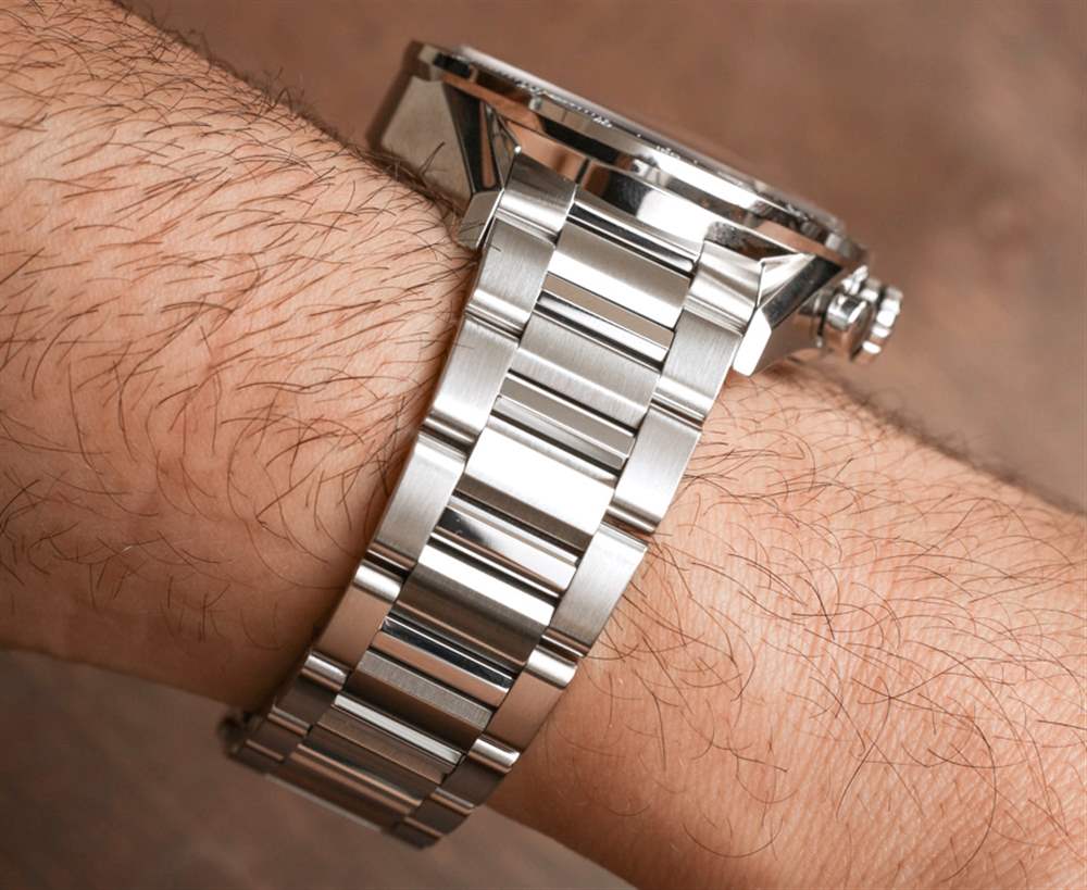 直接看手表時,與略顯柔和的 1887 相比,Heuer 01 版本的 Carrera 在線條上更加棱角分明,更具侵略性。這有點像將蘭博基尼的美學(xué)與法拉利進(jìn)行比較。需要指出的是,TAG Heuer Carrera 1887的表鏈實際上比Carrera Heuer 01的表帶寬了一點,只是稍微改變了美學(xué)。話雖如此,這兩款手表都具有三鏈?zhǔn)嚼z和拋光精鋼表鏈,折疊式展開式表扣在設(shè)計上非常相似。但同樣,所有部分都是獨(dú)一無二的。