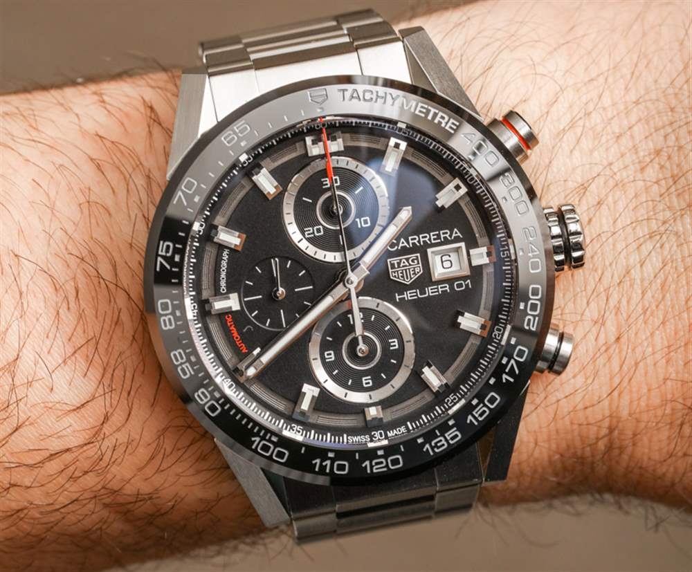 說到泰格豪雅 Carrera Heuer 01,這款特殊的型號是該系列中最保守的型號之一。大多數(shù)泰格豪雅 Carrera Heuer 01 腕表都以鏤空表盤和狂野現(xiàn)代的設(shè)計為標(biāo)志。我認(rèn)為它們是“嬰兒 Hublot Big Bang”手表——實際上有很多原因。這款特別的泰格豪雅 Carrera Heuer 01 沒有鏤空表盤,在傳統(tǒng)和現(xiàn)代設(shè)計之間提供了一種特殊的混合外觀。aBlogtoWatch 之前在此處對更現(xiàn)代的 TAG Heuer Carrera Heuer 01 腕表進(jìn)行了全面評測。