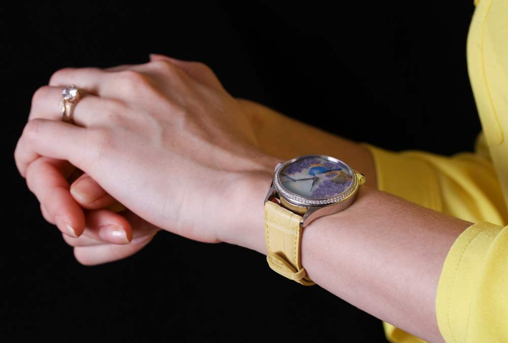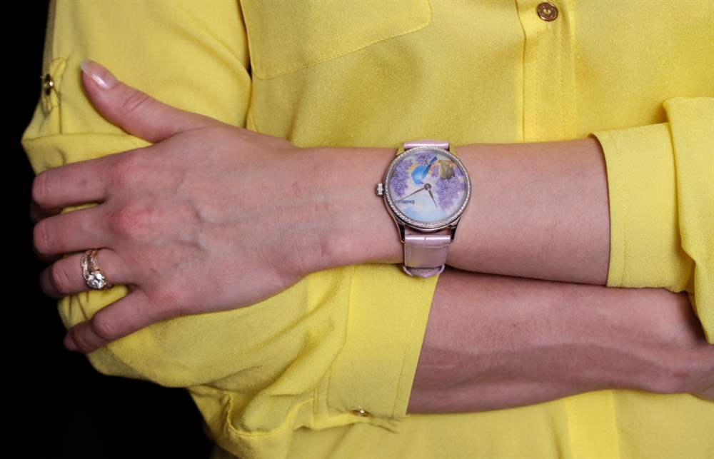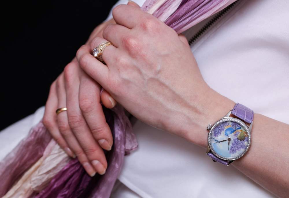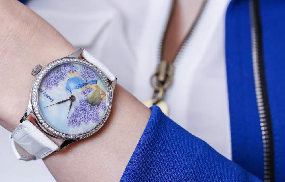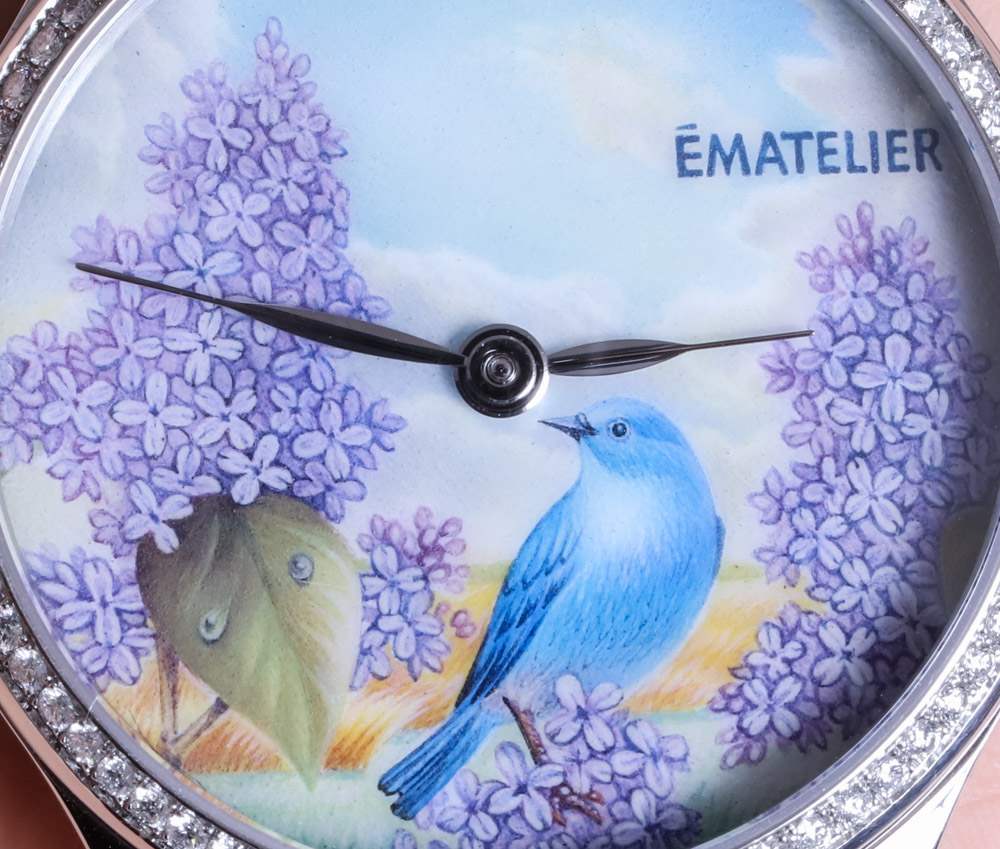 我正在寫的這款特別的手表被描述為 ématelier Harmony Lilacs and Bluebird。豐富的紫色和藍色組合在一起,融合了紫丁香的魅力、鳴禽的親切友好和鄉村景觀的寧靜。它描繪了一個可能確實存在于某個地方的奇幻地方,至少在大多數人的記憶中是這樣。
