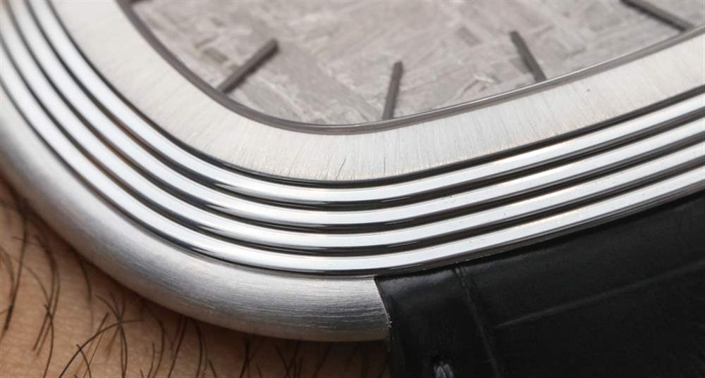 在我看來,天然淺灰色隕石表盤很漂亮。Piaget 標志印在藍寶石水晶的背面,18k 白金指針(啞光黑色)提供時間,甚至不提供秒數(shù)。這件作品在精神上確實是一款正裝手表,盡管您每次看到它時不一定都會以這種方式出現(xiàn)。但是,您可以從邏輯上確定,如果它不是運動手表或其他類似的東西,那么它只能是一件事……。正裝手表。