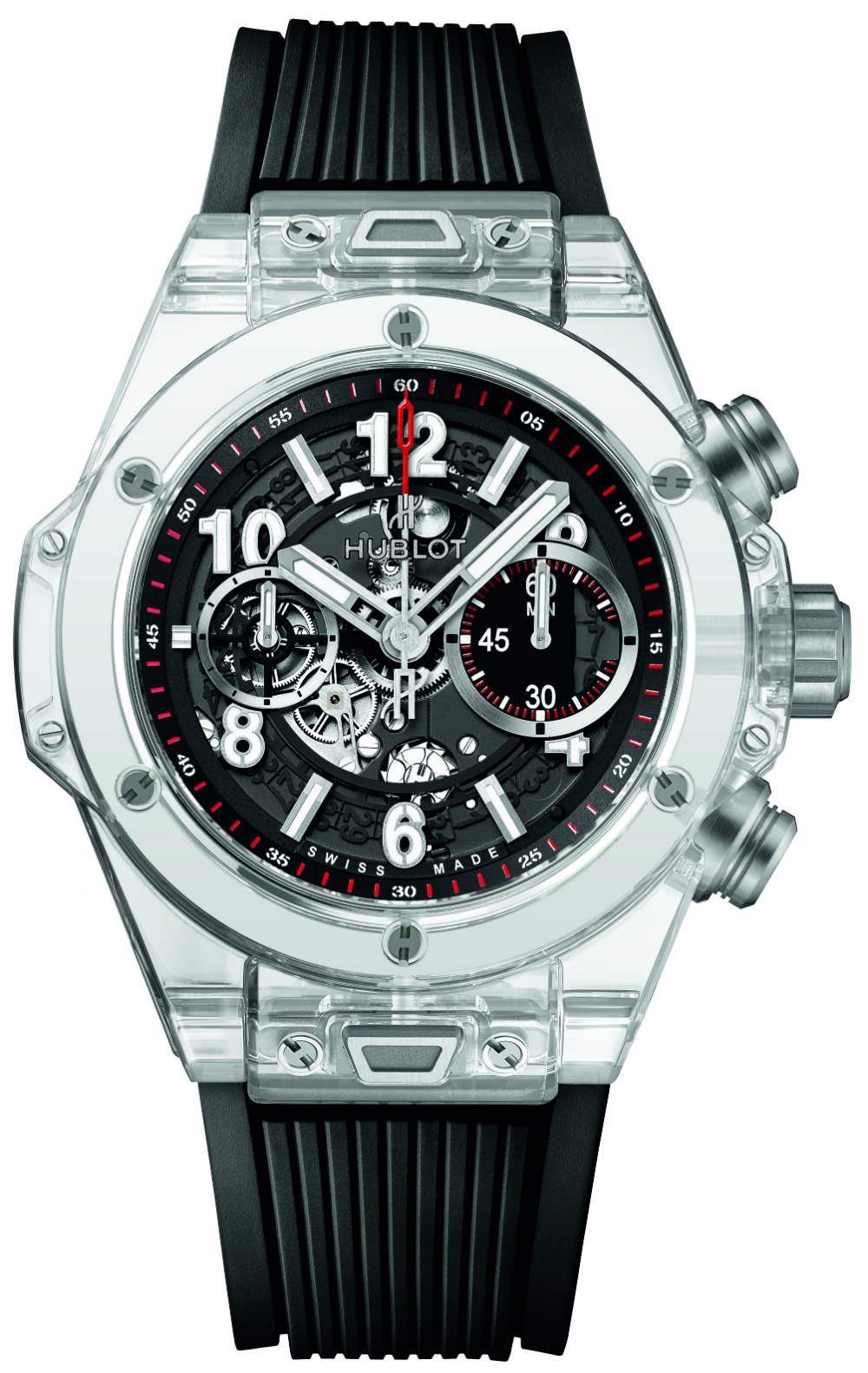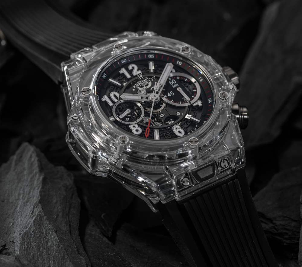 手表內部是內部制造的宇舶口徑 HUB1242 自動計時碼表機芯。該機芯有一個飛返導柱輪操作的計時碼表,以 4Hz 運行,具有三天的動力儲存。鑒于表殼的透明度,您可以以前所未有的方式看到機芯和表盤。說到表殼,在標準的 Big Bang UNICO 風格中,這款藍寶石版本的表殼寬 45 毫米,防水深度達 50 米。附在表殼上的是一條黑色橡膠表帶,可以使用宇舶表的“一鍵式”系統將其取下,效果非常好。廣告訊息廣告信息結束