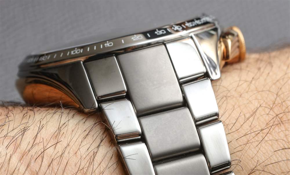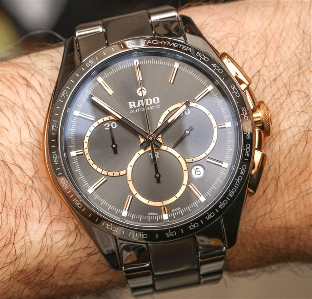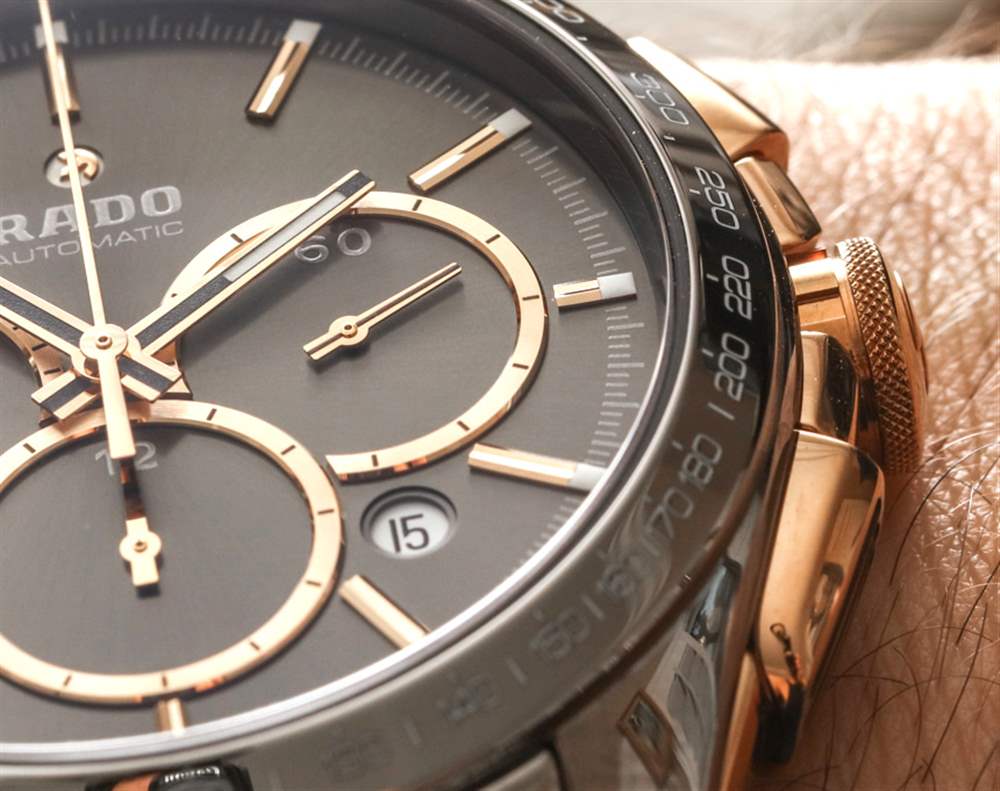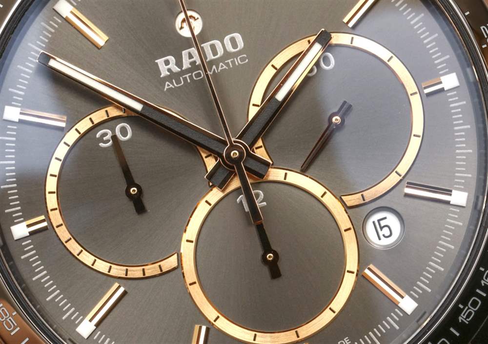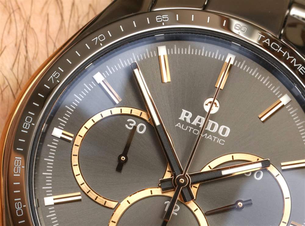 在我看來,陶瓷手表的缺點遠遠超過了耐磨性和顏色等優點。現在在 Rado 的網站上,我可以數出至少八種不同顏色的 HyperChrome 計時碼表。其中包括呈現為灰色、棕色、白色、黑色、黃金色調和玫瑰金色調三種色調的陶瓷表殼材料。在將陶瓷材料用于表殼和表鏈方面,很少有品牌能像 Rado 一樣成熟。該品牌在陶瓷作為表殼材料方面的創新絕對值得更多贊譽,這無疑是該品牌想要更多的贊譽。仔細檢查他們的表殼制作方式,可以發現大多數其他陶瓷表殼手表所沒有的技術獨創性——尤其是在這些價格下。