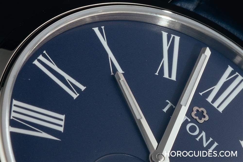 穿脫自如搭配的是鑲嵌梅花造型品牌Logo的折疊扣,40mm的尺寸大小適中你一定撐的住,套上西裝手腕一轉就是專業感,卷起袖子藍面到藍帶的齊一性與精致度,更看的出你的小講究??磳ρ劬蜁膭?,打開錢包又不心痛,買一只實戴的表,從TITONI中選那有那么難?