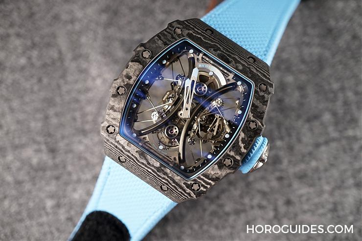 這款RM 53-01 Tourbillon Pablo Mac Donough采用相當搶眼的亮藍色搭配碳纖維材質的灰色調作搭配,頗具運動風格,而RM 53-01的表殼尺寸為44.50 x 49.94mm,表殼厚度約為16.15 mm,其動力儲能約70小時,限量推出30只。然而RICHARD MILLE向來都是富豪最愛,其價格當然也不會是一般人能夠隨便親近的價格,其參考價格約港幣720萬左右;約臺幣2700多萬。