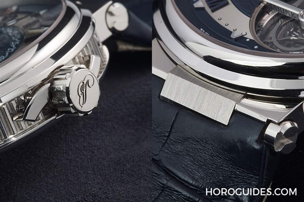 5887的表冠加了特別的波狀立體裝飾,Marine系列的表耳都是采這種特別設計。