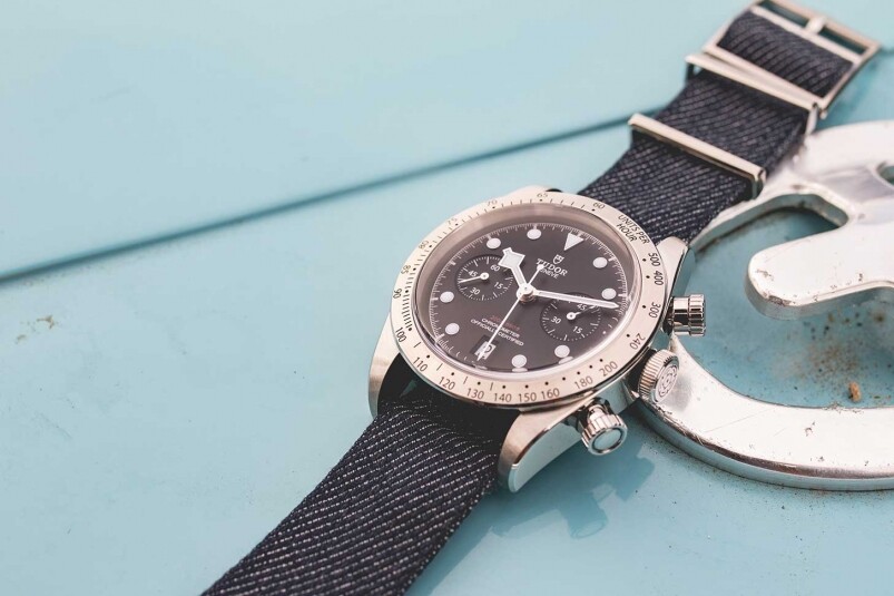 最深得我心的是,無論你是購買鋼帶款抑或是皮帶款式,Tudor都會為你多配一條表帶,Black Bay Chrono配搭的是深藍色牛仔布風提花織紋表帶,帶來復古感覺以外的味道,提供更悠閑型格的味道。不要少看這款表帶,這表帶是由帝舵表設計, 再委托法國圣艾提安(St-Etienne)地區一家擁有150年歷史的家族企業制作,采用十九世紀的提花織機編織而成,絕非坊間普通表帶可以相比。
