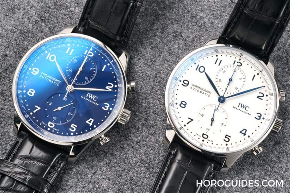 2018年新款的葡萄牙計時碼表150周年特別版(型號3716),和上一版3714也是非常相似,41mm不銹鋼材質表殼,有白面藍針或是藍面銀針二種款式,不過由于是周年版,因此3716的白色和藍色表盤都是漆面材質,看起來光澤感自然是有所不同;除此之外,數字時標與點狀刻度也從原本的立體金屬材質,改成印制的呈現方式,這點就是見仁見智,青菜蘿卜各有所好。