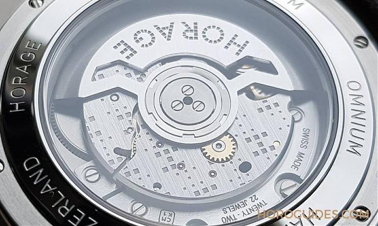 細節(jié)是評鑒手表的基本條件,從表冠的造型,表扣還有面盤Logo 皆以點狀組成,可以看出品牌的投入。點狀字是來自紐約地鐵站,類似馬賽克的排列方式,極具藝術美感。Omnium搭載自行研制的K-1機芯,橋板上依然有方格雕飾,挺特別的處理方式,有水準以上的拋磨修飾。機芯的震頻為25200 (兼顧較長的走時能量與精準),采用矽擒縱結構。經佩戴測試,每日約快2-5秒(平放約5秒)。HORAGE是手表,也是珠寶品牌,在表殼后蓋邊緣寫著:HAND MADE,可以看出手工制表的比例很高,好表。