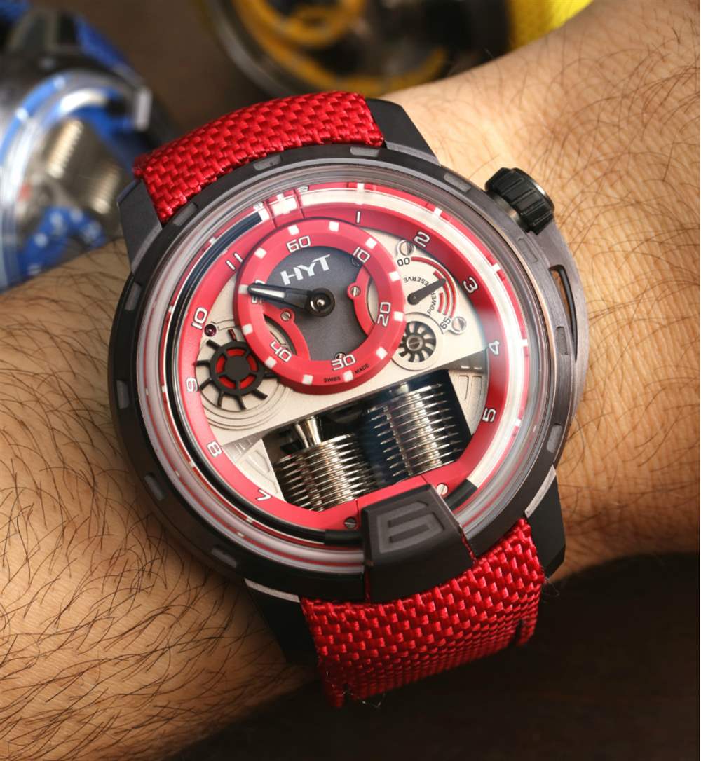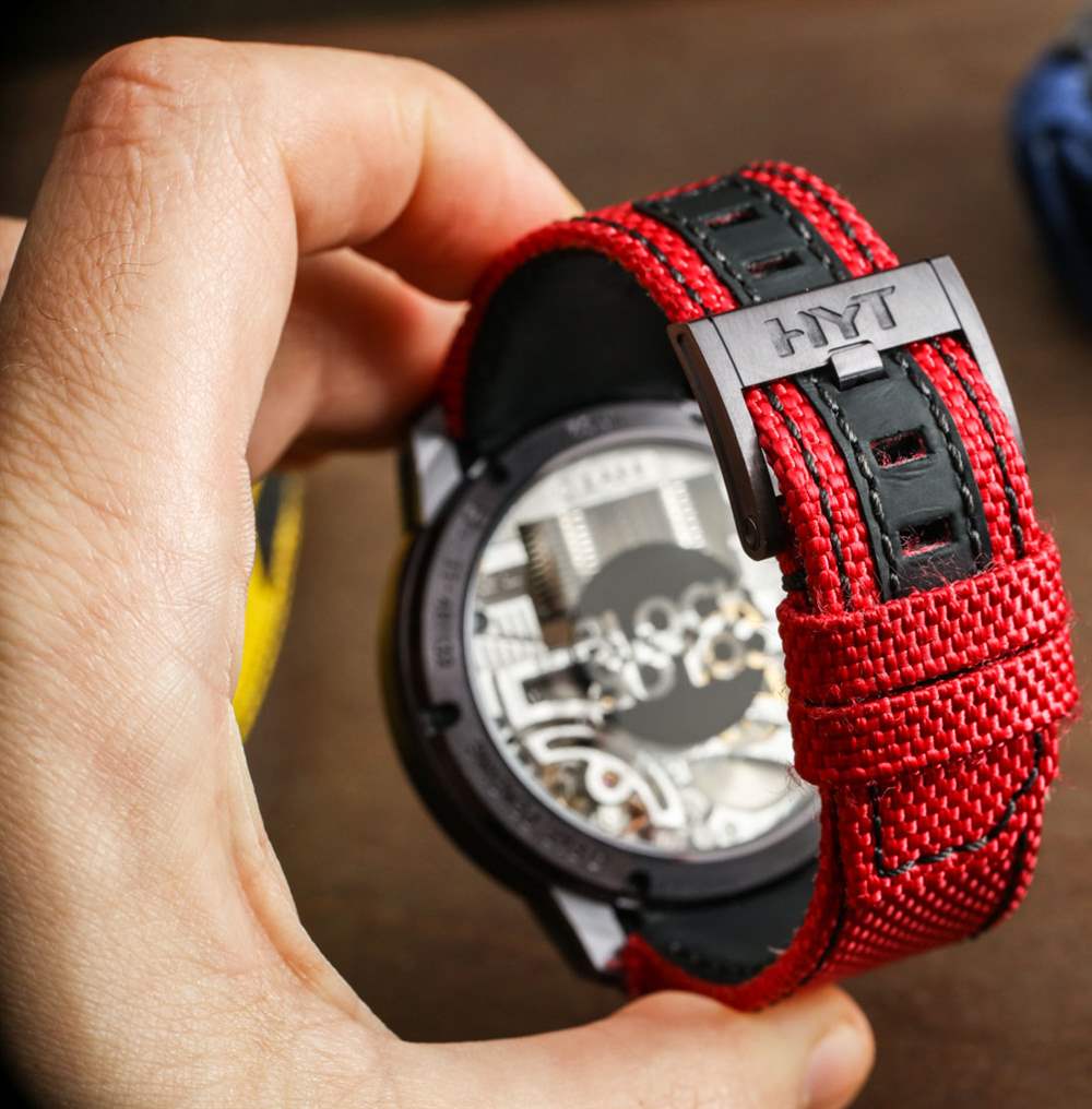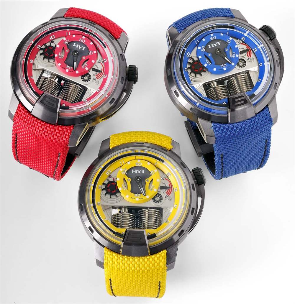 HYT H1 拼色手表每款僅限 10 件,但并不適合所有人。該系列由紅色參考 148-TT-80-NF-FR、黃色參考 148-TT-80-NF-FY 和藍色參考 148-TT-80-NF-FB 組成。