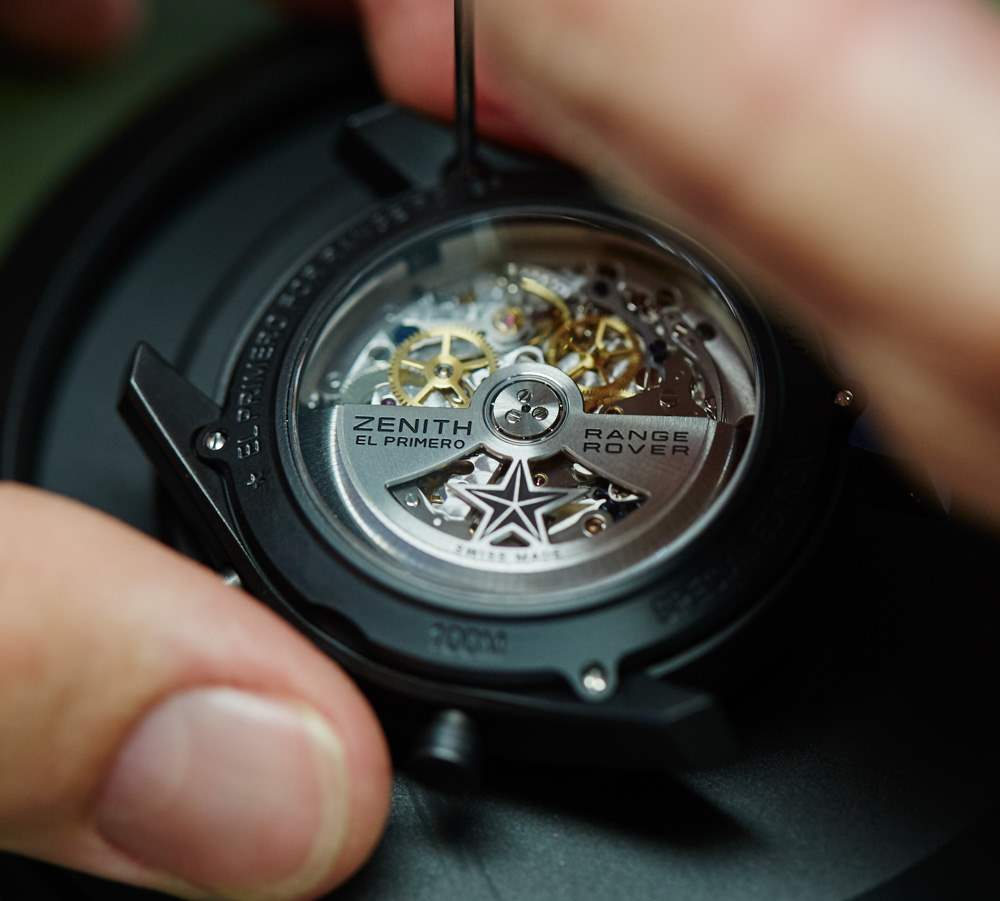 沒(méi)有規(guī)定說(shuō)駕駛路虎攬勝汽車的人會(huì)想要路虎攬勝手表。事實(shí)上,有些人可能會(huì)爭(zhēng)辯說(shuō),將兩者搭配起來(lái)有點(diǎn)過(guò)多的配飾搭配。話雖如此,這是一種在不駕駛路虎時(shí)表達(dá)您對(duì)路虎攬勝的欣賞的方式,或者如果您只是喜歡該品牌所代表的整體含義。Zenith 決定將 Range Rover 的名稱包含在 Zenith 下方的表盤上。它并沒(méi)有太突出,但它就在那里。您會(huì)在背面看到更多的雙重品牌。我想說(shuō)這兩個(gè)名字的結(jié)合是微妙的——這是對(duì)真力時(shí)的贊美,因?yàn)樗麄冏罱囊恍╇p品牌手表(與世界各地的各種愛(ài)好者組織)對(duì)大多數(shù)人的口味來(lái)說(shuō)有點(diǎn)多。