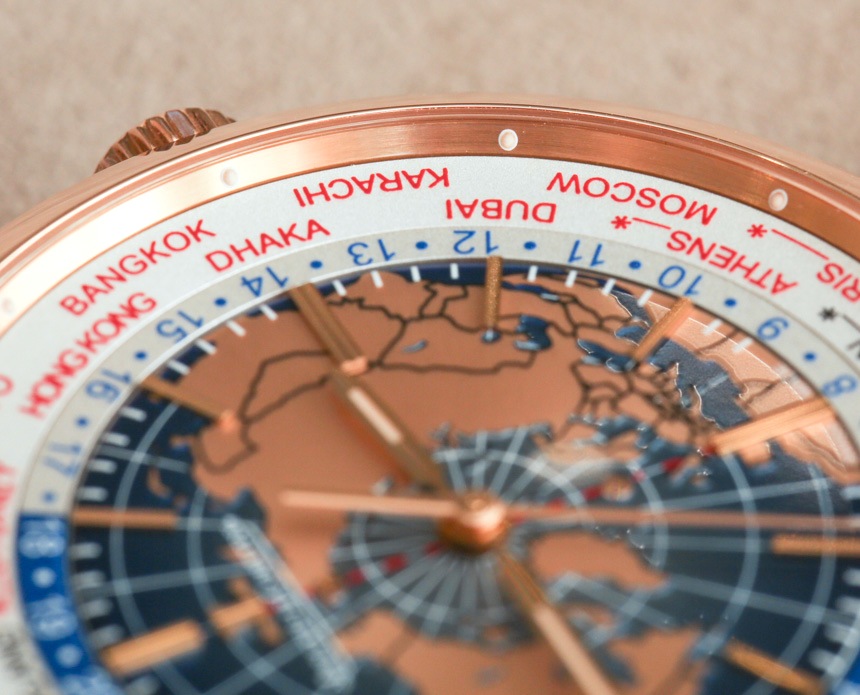 772 自動(dòng)上鏈機(jī)芯采用傳統(tǒng)的世界時(shí)間復(fù)雜布局,包括表盤上的 24 小時(shí)盤,當(dāng)與相鄰的參考時(shí)間城市指示器一起使用時(shí),用戶可以立即知道任何主要國(guó)家/地區(qū)的時(shí)間馬上 24 個(gè)時(shí)區(qū)。它是一種用于許多時(shí)計(jì)的系統(tǒng),經(jīng)久不衰的不僅是其優(yōu)雅的設(shè)計(jì),還有其毫不費(fèi)力的實(shí)用性。表盤上金色或銀色調(diào)的浮雕地球儀的特殊設(shè)計(jì)很帥氣,我很高興積家決定以略微立體的方式制作面部。在我看來,我發(fā)現(xiàn)其他一些世界時(shí)間表盤感覺很扁平,這降低了它們的吸引力。