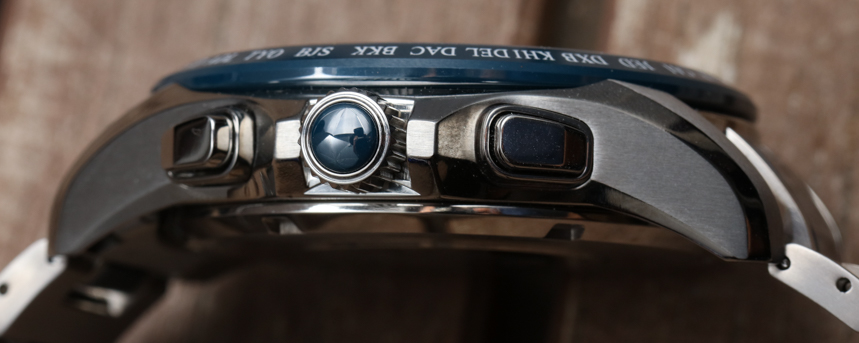 雖然手表的表盤只有星期幾和日期,但日歷是永久性的,根據精工的說法,8X53 機芯直到 2100 年(我們都死了)才需要調整日歷。這款手表具有 40 個不同時區的內置數據,從一個區域到另一個區域的更改很容易,因為秒指示器指針使用 UTC 加號或減號刻度或參考城市刻度將自身重新定位為時區選擇器 –在時區選擇模式下。雖然我確實喜歡將計時碼表作為旅行手表的一部分,但精工 Astron GPS 太陽能雙時區幾乎擁有其他所有功能。因此,如果您可以在沒有計時碼表的情況下生活,那么這就是一款非常堅固的旅行手表,甚至可以作為日常佩戴。它確實有幫助,但是,