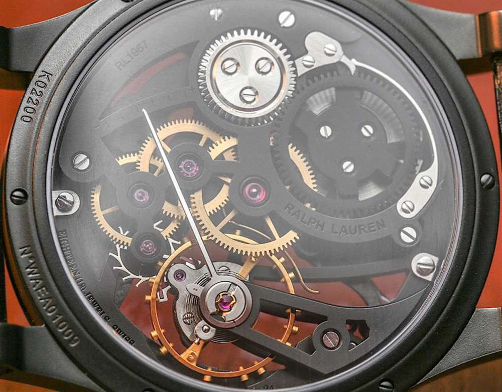 這個相當昂貴的模型是 Ralph Lauren RL Automotive Model Wood Bezel ref 的更高級版本。RLR0220710。它們各自共享 IWC 萬國表為 Ralph Lauren 生產的手動上鏈機芯。雖然更簡單的手表有傳統的表盤和機芯(通過底蓋可見),但 Ralph Lauren RL Automotive Skeleton 型號就是這樣——采用獨特的現代藝術方法來鏤空機芯,采用更簡單手表的口徑 RL98295 并將其鏤空在 ValFleurier(Richemont 擁有的機芯制造商)為 Ralph Lauren RL Automotive Skeleton 手表。兩種型號之間的價格差異相當顯著,為 36,000 美元。所以問題是價格差異背后的原因是什么,這些手表最適合誰?廣告訊息廣告信息結束