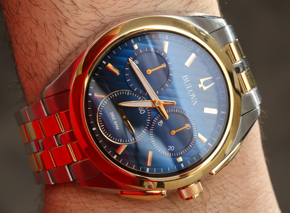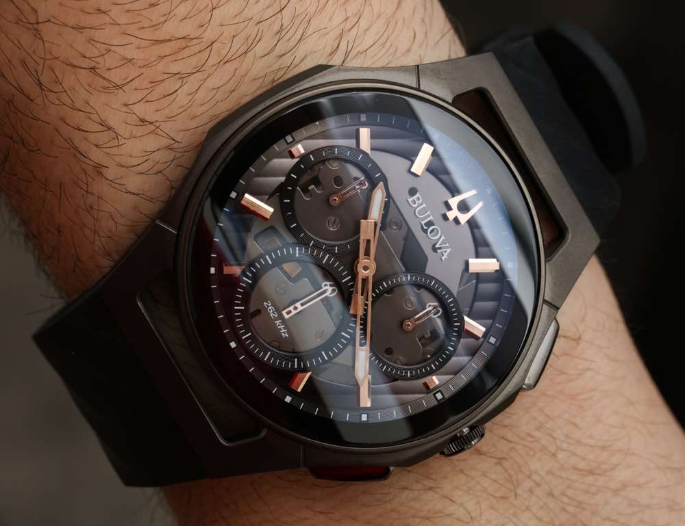 在談論更大的 CURV 手表系列之前,我想多討論一下機芯。這些都是 Bulova 的高頻石英機芯,運行頻率為 262kHz,精度高于“標準”石英機芯。這些機芯是從該品牌仍然非常酷的 Precisionist 機芯系列演變而來的。此前,這些機芯被冠以“UHF”(超高頻)的系列名稱,但尚不清楚今后寶路華是否會保持這一命名慣例。