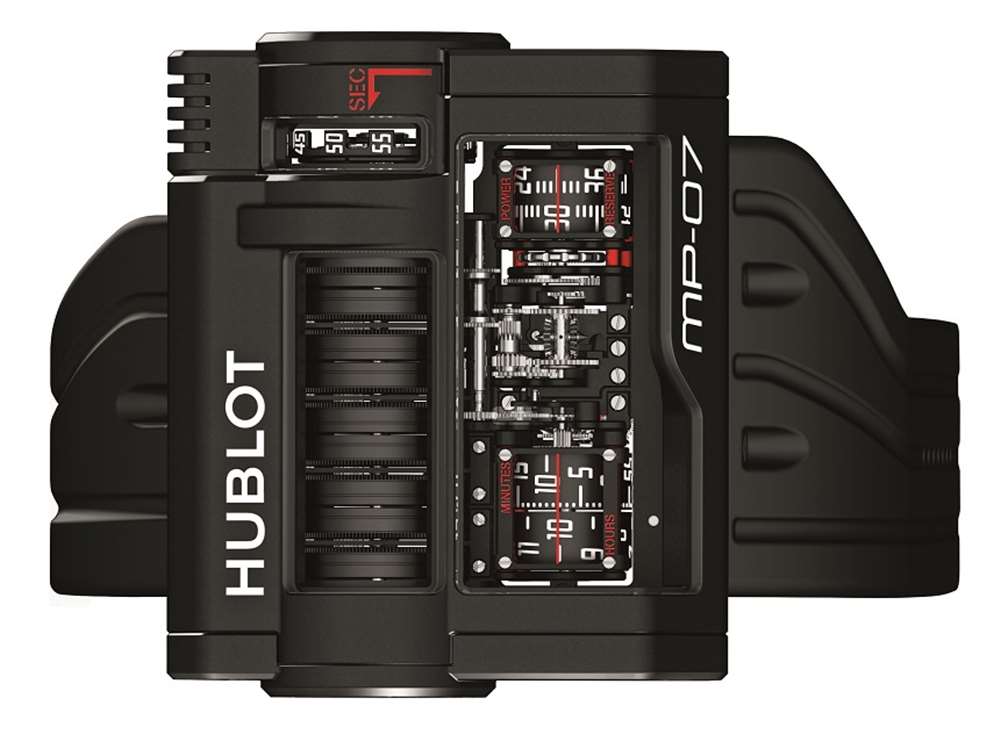 Hublot MP-07 42 天動力儲存表殼寬 51 毫米,高 42.95 毫米。表殼也有 24 毫米厚(當然很多)。表殼防水深度為 30 米,表殼正面、側面和背面均采用藍寶石水晶玻璃。