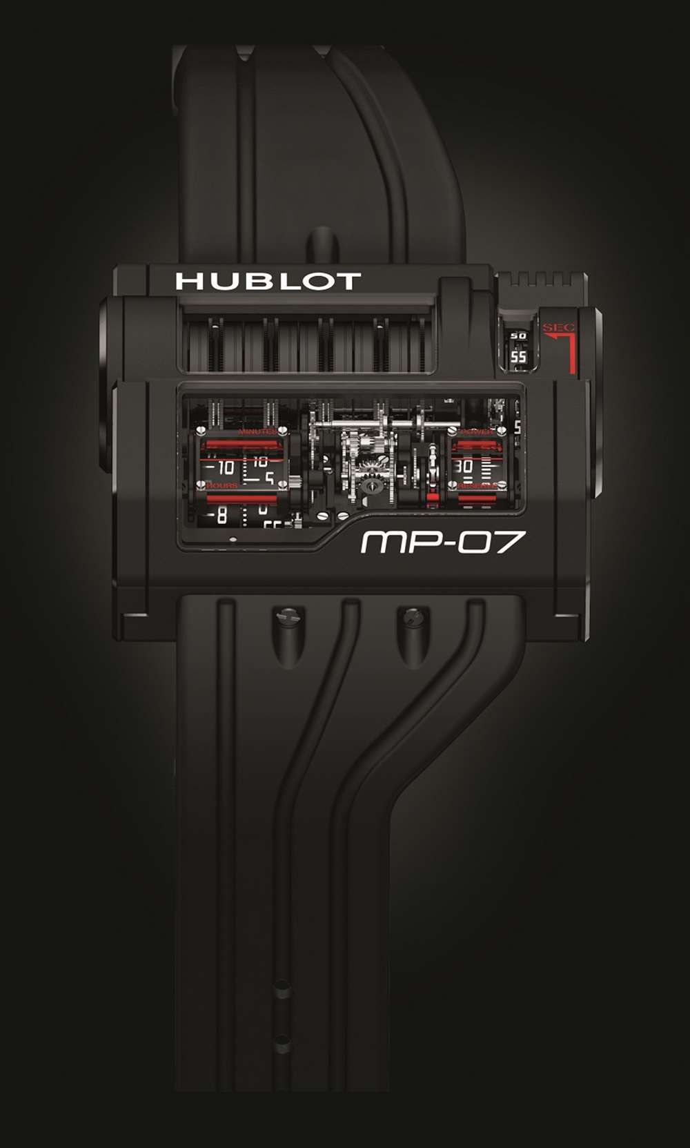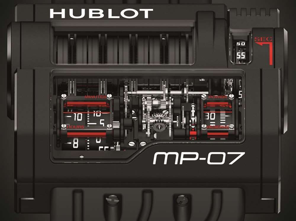 MP-05 La Ferrari 腕表總共擁有 50 天的動力儲存,而 Hublot MP-07 42 Days Power Reserve 則擁有 42 天的動力儲存。這是因為它有九個堆疊的主發條盒,而不是 MP-05 中的 11 個發條盒。您還會注意到,雖然兩款超長動力儲存腕表的機芯組件相似,但它們的布局卻大不相同。MP-05 完全是為了創造汽車引擎的視覺形象,而 Hublot MP-07 42 天動力儲存的機芯和表殼則更有棱角,就像 1980 年代的機械小工具。Hublot MP-07 42 天動力儲存不是像 MP-05 那樣垂直堆疊主發條盒,而是將它們水平放置。MP-07 機芯和指示器布局的主要優點之一是讀取時間和動力儲存信息更加容易。廣告留言廣告信息結束