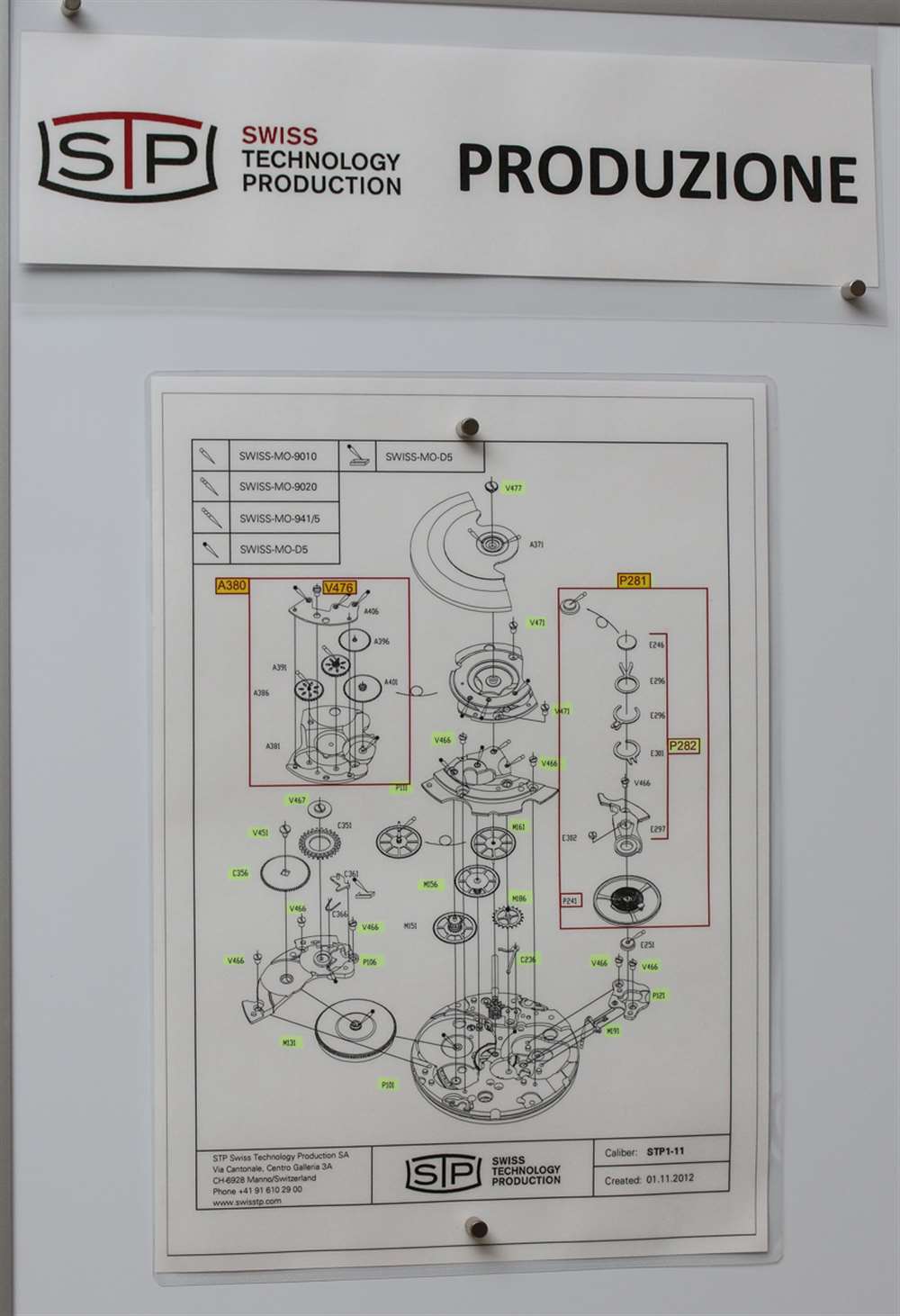 STP 是機芯組裝地,但 Fossil Group 也在瑞士的另一家工廠生產許多機芯組件。STP 機芯中的大部分組件均由該集團生產,但它們也依賴于一系列區域鐘表業供應商,他們共同制造現代機芯生產所需的橋板、發條、齒輪、輪子、珠寶和其他材料機械表機芯。