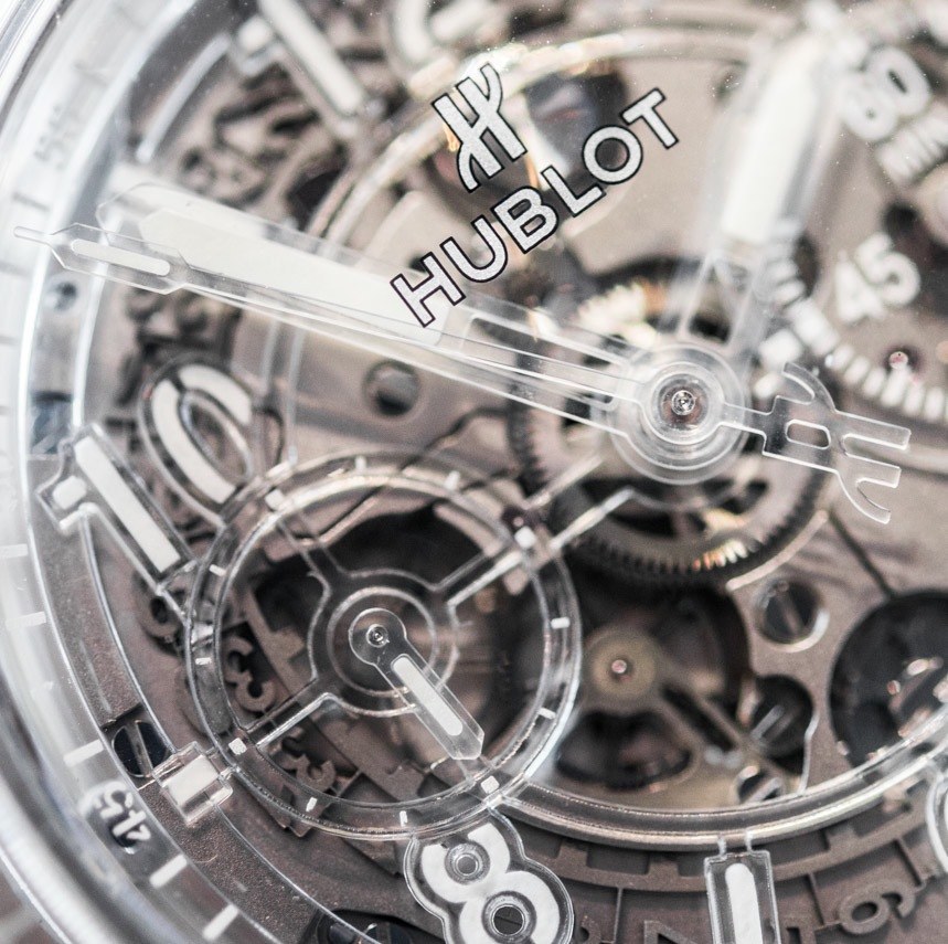 這有助于解釋為什么 Hublot Big Bang UNICO 藍寶石不僅擁有全藍寶石水晶三件式表殼,而且表盤上還有指針甚至表帶等透明元素。我不認為“透明”會成為新的“全黑”,但這是一個很酷的概念,而且無可否認,它非常適合 Big Bang UNICO。