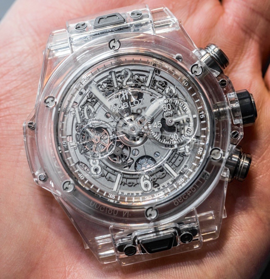 對于宇舶表來說,全黑手表的反義詞并不是全白手表。雖然有全黑的“幻影”Big Bangs,但我不記得有任何全白的模特。相反,具有諷刺意味的是,與保留“可見隱形”精神的全黑手表相反的是透明手表。聰明的。