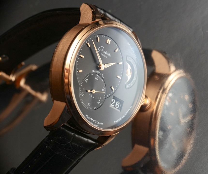 在表盤上,功能明顯不對稱布局,但也符合邏輯且視覺平衡。表盤制作精美,清晰易讀,時針和分針甚至發光。我并不傾向于抱怨撥號文本,但考慮到這里字體的多樣性和一些文本的實用性較低,我覺得“Mondphase”和“Panoramadatum”只是不必要的。我不介意“PanoMaticLunar”型號名稱或“德國制造”,我覺得將它們放在表盤上會更好。