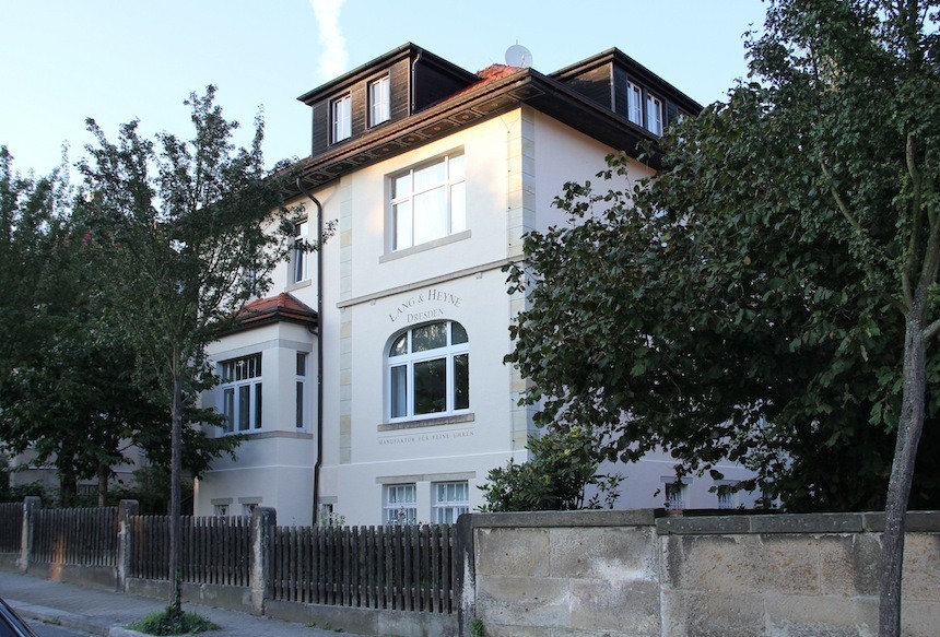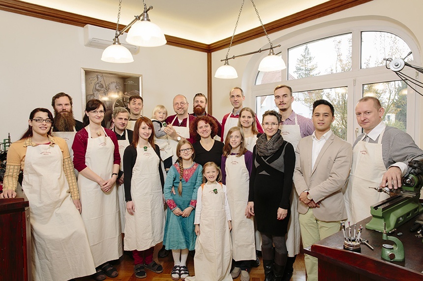 當(dāng)我稱(chēng)他為“嚴(yán)肅的手表書(shū)呆子”時(shí),Marco Lang 笑了。走過(guò)Lang & Heyne舒適的制造空間,在他用母語(yǔ)德語(yǔ)說(shuō)話的間隙,我聽(tīng)到他用英語(yǔ)“watch nerd”說(shuō)話,他自豪地向他的各種制表師重復(fù)我的短語(yǔ),這些制表師共同組成了非常特別的德累斯頓制造商傳統(tǒng)鐘表。Marco Lang 指著他掛在廚房墻上的制表師證書(shū),這些證書(shū)構(gòu)成了多代官方文件的馬賽克,證明他來(lái)自一長(zhǎng)串志同道合的微型機(jī)械頭腦。他最喜歡的是 1920 年代初期,當(dāng)時(shí)他的一位女性親戚不僅是郎氏第一位女性制表師,也是該地區(qū)第一位女性制表師。