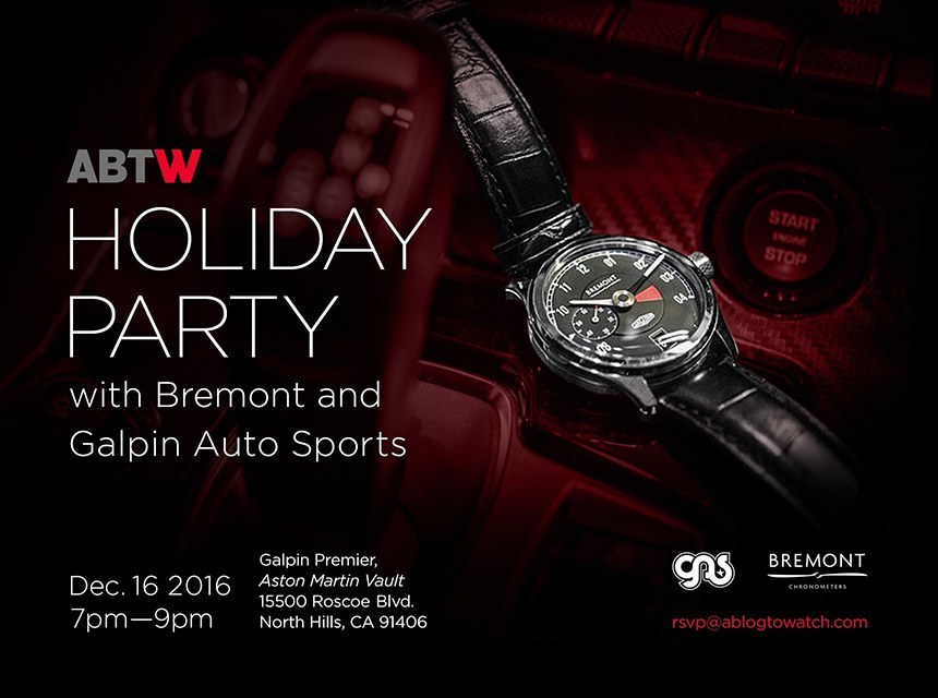 2015 年 12 月 16 日,我親自邀請洛杉磯地區的 aBlogtoWatch 社區成員加入我們和Bremont手表在加利福尼亞州北山Galpin Motors的夜間假期活動。高級手表和汽車將成為此次活動的主題,因為 Galpin 的內部手表店Jewell’s以及 Bremont 和 Jaguar 將提供一系列可供觀看、觸摸、購買,當然還有駕駛的商品。