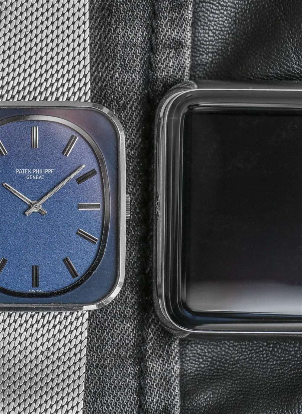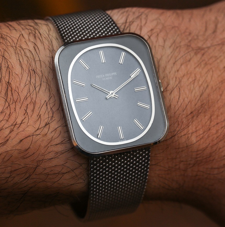 有點遺憾的是,我沒有將帶米蘭手鏈的 Apple Watch 放在百達翡麗 3582 旁邊,但當然那個型號是最接近的模擬,我覺得最有趣的來源諷刺。相反,我向您提交了帶有鋼制“Link Bracelet”的 Apple Watch,以及 18k 白金 Patek Philippe Ellipse 3582G 的閃亮示例,并附有網狀金屬 18k 白金手鏈。