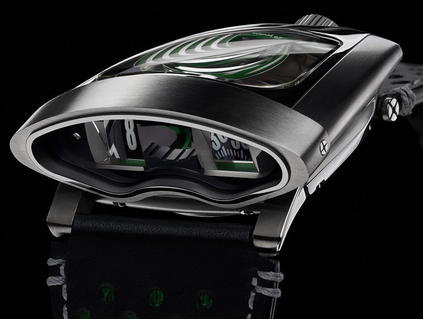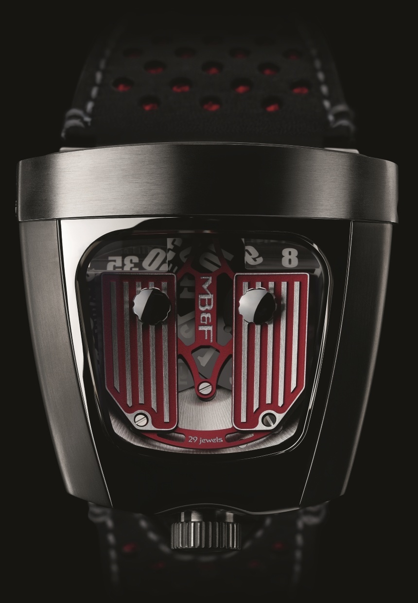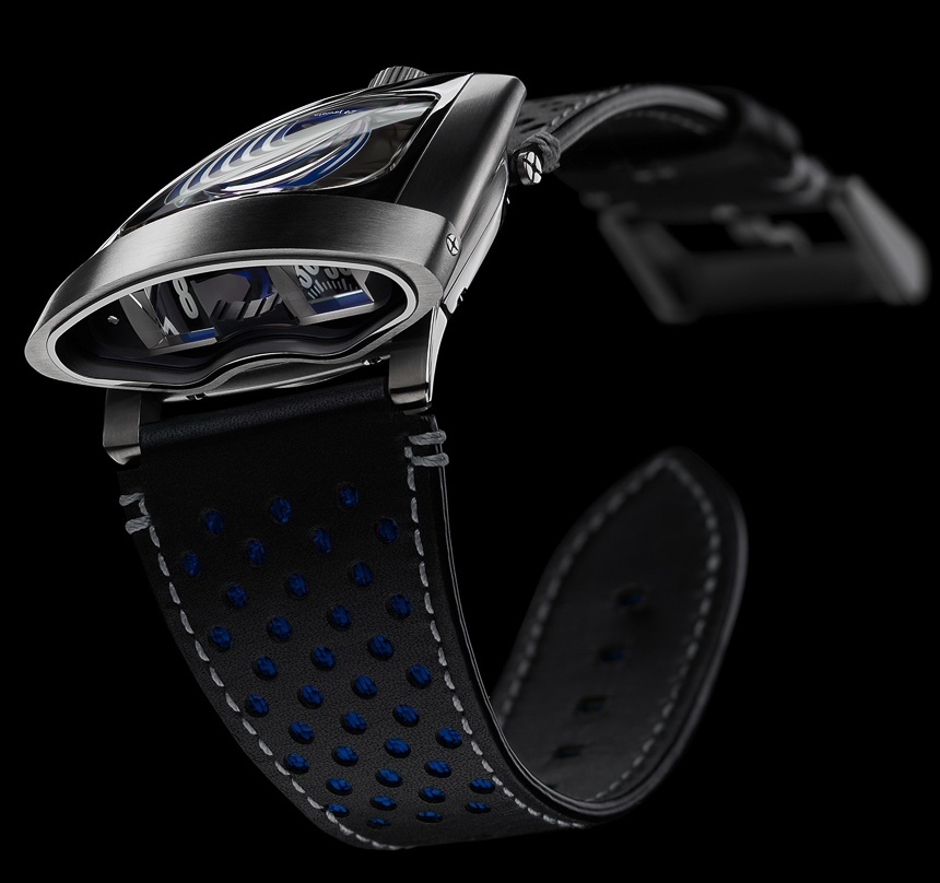 根據 MB&F 的說法,這些顏色的靈感來自賽車——MB&F HMX 整體??也是如此。MB&F HMX 與 HM5 手表一樣,是一款“楔形”駕駛員手表,其時間指示不是在手表的“頂部”,而是在側面。這個想法是,當你的手放在方向盤或其他類型的控件上時,你不需要移開或轉動你的手來讀取時間。與 HM5 一樣,MB&F HMX 使用藍寶石水晶棱鏡將顯示時間的圓盤的視角移到一邊,但執行方式略有不同。