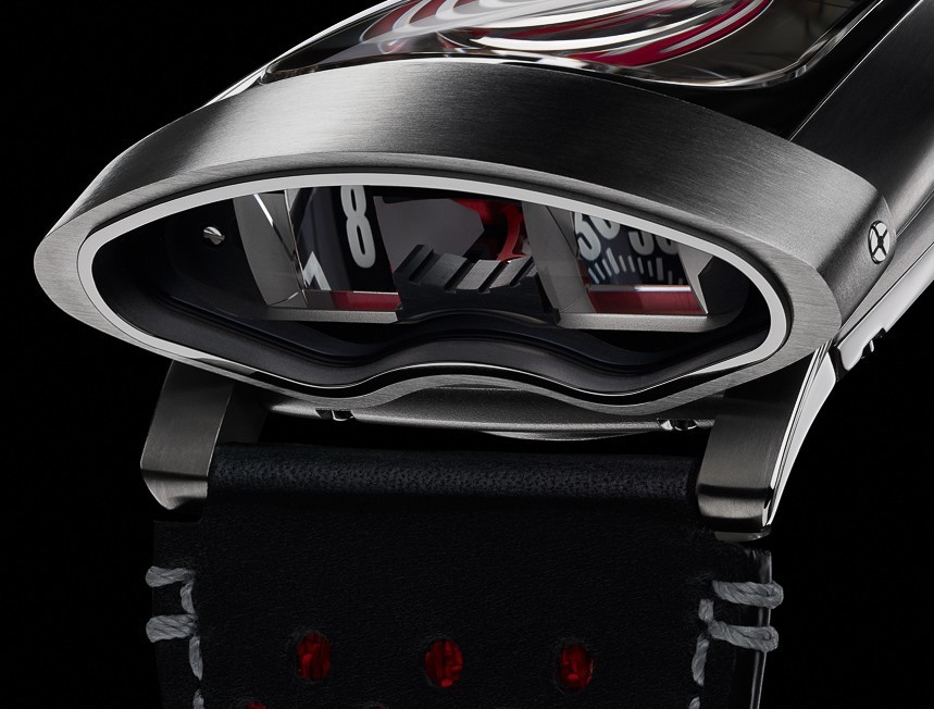 從材料的角度來看,MB&F HMX 表殼最簡單的一面是鈦和鋼。頂部有藍寶石水晶,可以看到機芯的“發動機艙”,前面是查看時間的地方,手表下面是放置 22k 金轉子的地方。只是我,還是表盤看起來像倒置的嘴唇?MB&F 并不是唯一一家受到汽車發動機艙啟發的手表制造商——HM5 中機芯的顯示方式尤其受到了法拉利的啟發。至少與 HM5 相比,一個有趣的變化是,使用 MB&F HMX,您可以通過藍寶石水晶看到機芯,您可以看到時間。