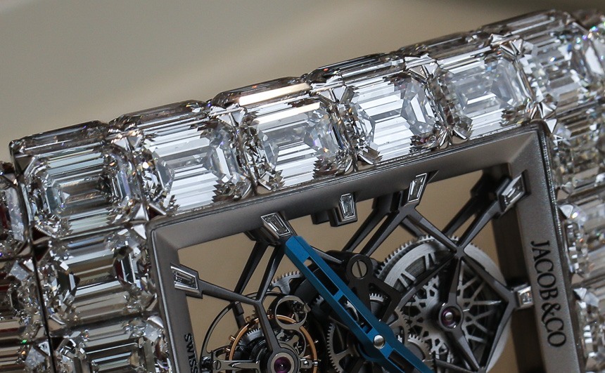 順便說一句,我喜歡這樣一個(gè)事實(shí),即整個(gè)表冠都是鉆石。事實(shí)上,您所看到的很少是真正的白金表殼,您在 Jacob & Co. Billionaire 手表的表盤外所體驗(yàn)到的大部分只是鉆石。