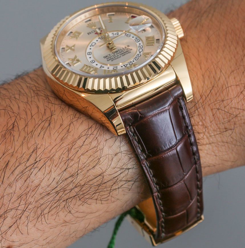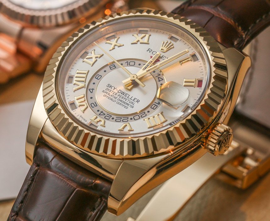 當(dāng)勞力士首次推出勞力士 Sky-Dweller 時,它只有黃金材質(zhì)——但有 18k 金、玫瑰金 (Everose) 和白金。2014 年,勞力士將腕表系列翻了一番,從三款增加到六款。仍然沒有任何新的材料選項,但有新的表盤樣式(本文中介紹的那些型號),以及表帶或手鐲的新選項。您會注意到,勞力士在表帶上提供勞力士 Sky-Dweller 的某些表盤版本,在配套的 18k 金手鏈上提供其他表盤版本。
