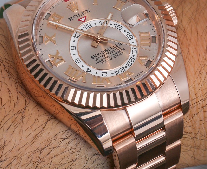 最初的勞力士 Sky-Dweller 手表確實有 Everose 型號,但它配備了帶有深色表盤的表帶。人們想要一款與表殼顏色更中性的手鐲——就是這樣。這是勞力士 Sky-Dweller 手表中最經(jīng)典的“勞力士”,在我看來——好吧,僅次于勞力士 Sky-Dweller 型號 326938,后者是 18k 黃金版本,搭配手鏈和“香檳色表盤”。