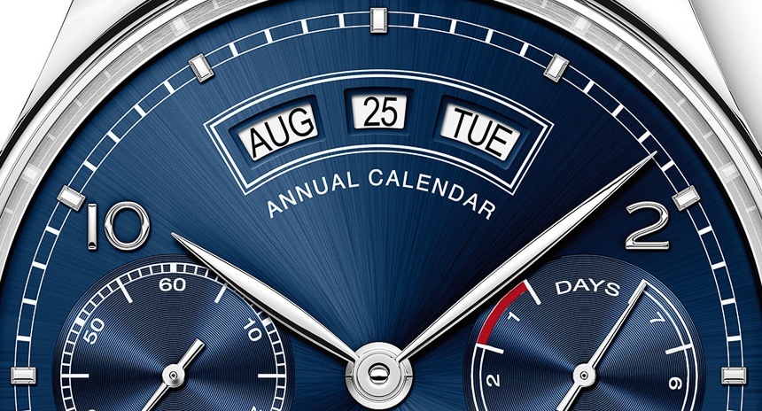 總而言之,我真的很喜歡 IWC Portugieser 年歷表盤的布局,它并沒(méi)有從根本上改變葡萄牙人的外觀,而是增加了一點(diǎn)。它不僅增加了年歷顯示,還增加了一個(gè)非常易于閱讀和優(yōu)雅設(shè)置的年歷復(fù)雜系統(tǒng)。在 12 點(diǎn)鐘位置下方并排設(shè)置了三個(gè)窗口,分別顯示月份、日期和星期幾。這種布局是出于技術(shù)原因而設(shè)計(jì)的,事實(shí)證明它最適合美國(guó)人指示日期的方式。理想情況下它會(huì)先說(shuō)星期幾,但我一點(diǎn)也不抱怨。在我看來(lái),沒(méi)有必要的是三個(gè)窗口下的“年歷”聲明。我知道該品牌可能會(huì)測(cè)試帶有和不帶有此文字的表盤,廣告留言廣告信息結(jié)束
