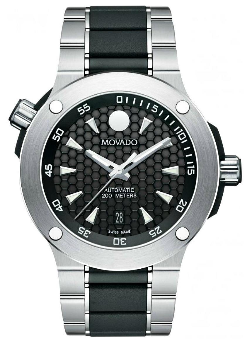 Movado SE Extreme Automatic 200 diver 寬 44 毫米,表殼由鋼和黑色聚氨酯(塑料)制成——用作中間部分和表冠護板——除了整體表殼設(shè)計外,這實際上與 Hublot 的另一個相似之處。表盤非常有趣,具有蜂窩紋理表面和清晰的時標(biāo)。這不是你父親難以閱讀的摩凡陀表盤。它還有一個內(nèi)部旋轉(zhuǎn)表圈,在 10 點鐘位置有一個調(diào)節(jié)表冠。出于某種原因,摩凡陀無法從表殼中擠出完整的 300 米防水性,所以它只有 200 米。不過,我又很挑剔,因為這款手表適合大多數(shù)休閑潛水和游泳目的。