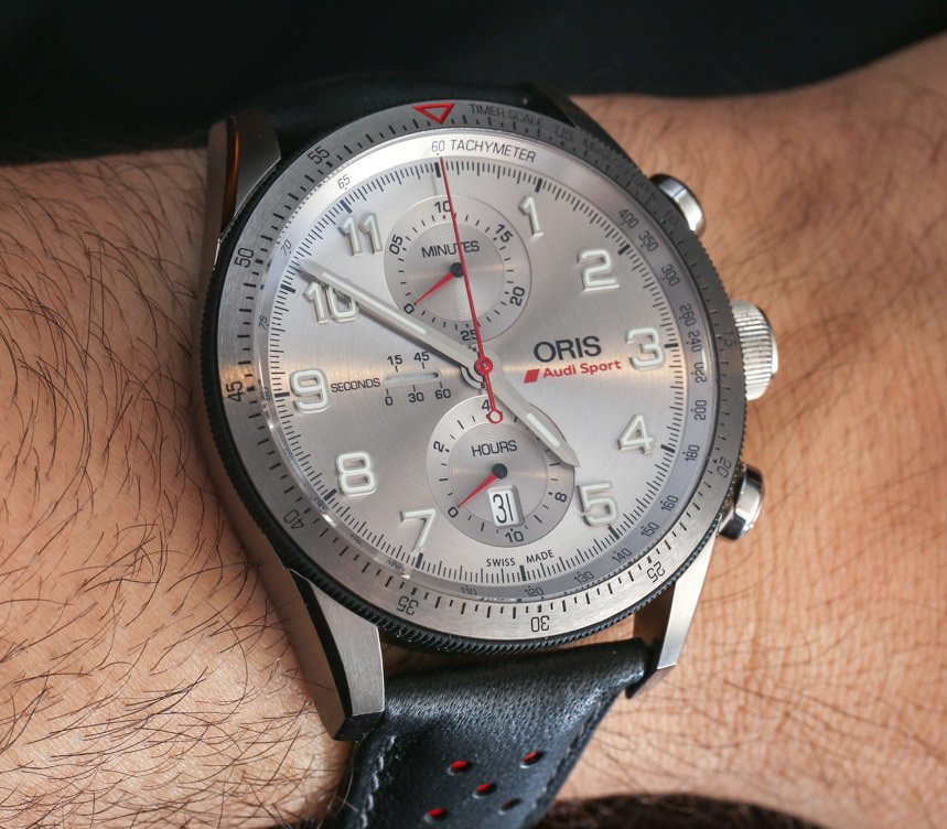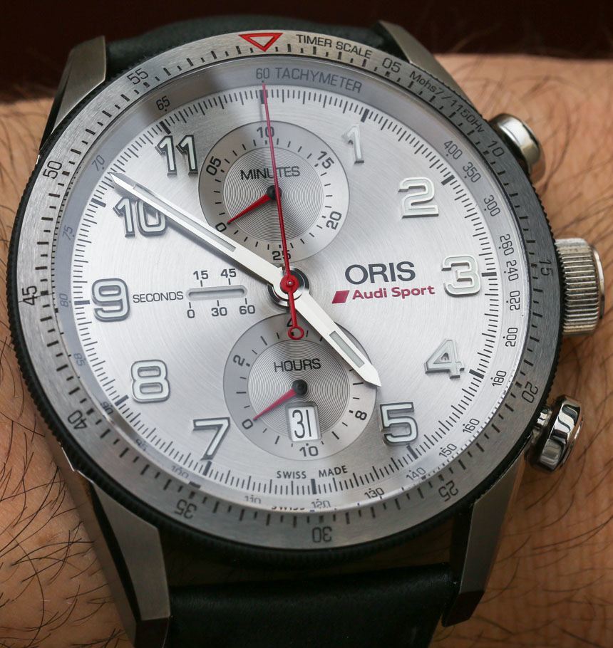 2014 年最漂亮的賽車主題手表之一是Oris的限量版計(jì)時(shí)碼表,旨在慶祝他們與奧迪運(yùn)動(dòng)賽車(奧迪賽車隊(duì)的分支機(jī)構(gòu))的合作關(guān)系。被稱為 Oris Audi Sport 限量版 ref。01 774 7661 7481,這款手表是更大的 Oris Artix 賽車計(jì)時(shí)碼表系列的重要組成部分,但具有非常吸引人的飾面和材料組合。它也是我所知道的為數(shù)不多的具有非常清晰的銀色表盤的手表之一——在我看來,這立即使它變得獨(dú)特和吸引人。