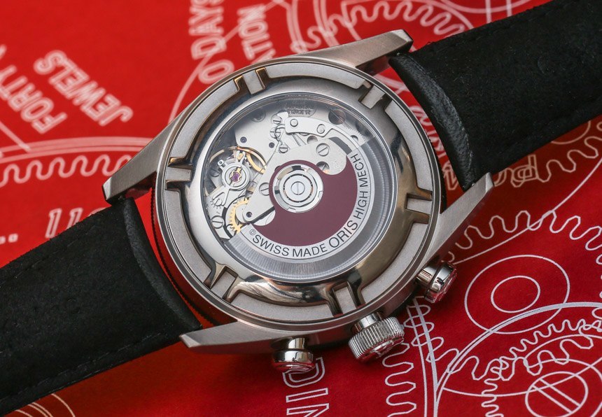 Oris Audi Sport Limited Edition 腕表的表殼防水深度達(dá) 100 米,藍(lán)寶石水晶表鏡上有做工精良的 AR 涂層。手表內(nèi)部是 Oris 口徑 774,我很高興看到它們清楚地表明它是瑞士 Sellita SW 500 的基礎(chǔ)(ETA Valjoux 7750 克隆)。感謝他們清楚這一點(diǎn)。該機(jī)芯使用了 Oris 品牌手表典型的紅色涂漆自動(dòng)轉(zhuǎn)子。