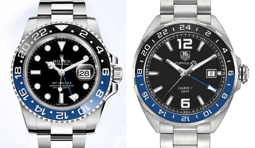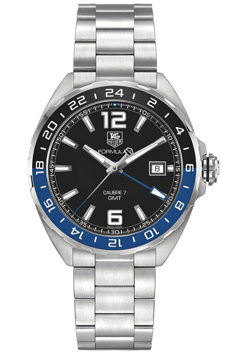 雖然泰格豪雅 Formula 1 GMT 沒有像勞力士 GMT-Master II Day/Night 那樣花哨的雙色陶瓷表圈,但它的價格確實低了大約 7,000 美元。這么說吧,這兩款手表并不完全是勢均力敵的競爭者,但了解制表師如何以及何時相互“稱贊設(shè)計”是個好主意。TAG Heuer Formula 1 GMT 的表圈恰好是鋁制的。如上所述,鑒于酒桶式(桶形)表殼,鋼表殼寬 41 毫米,但磨損較大。表殼和表鏈大多經(jīng)過拉絲處理,具有絕對清醒和運動的主題。