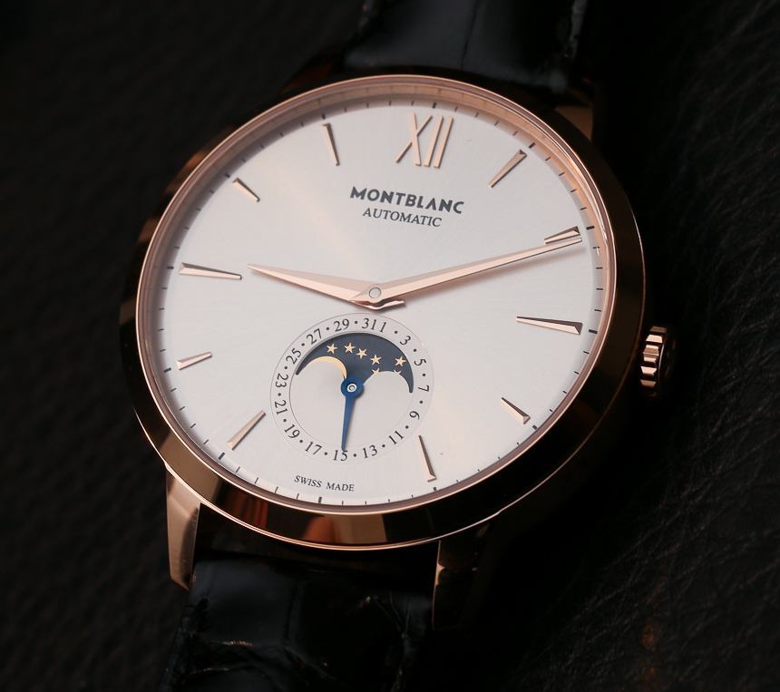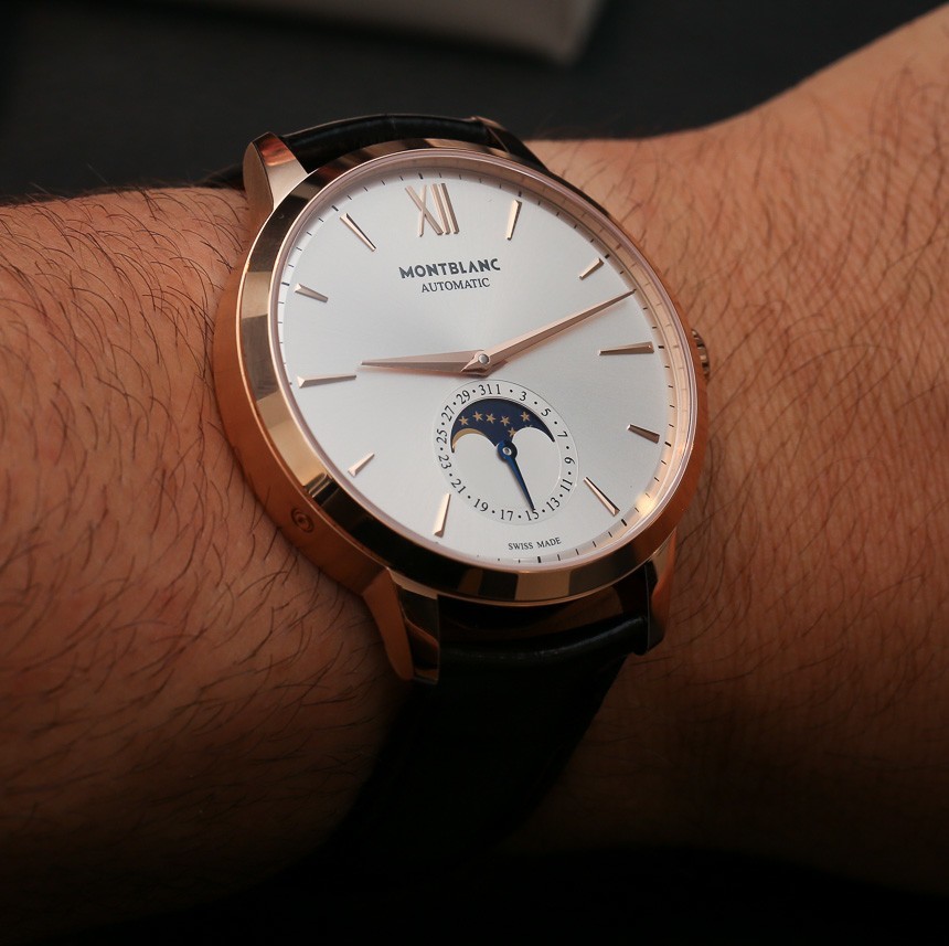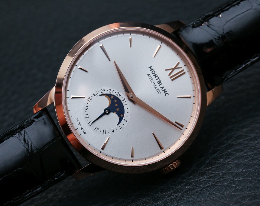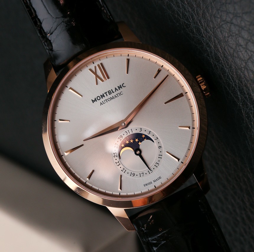 我對今年在 SIHH 2014 上推出的萬寶龍大班傳承系列手表寄予厚望。我們之前已經討論過,今天我們想看看外觀優雅的萬寶龍大班傳承月相手表型號。這個簡單的手表有時間,沒有秒指示器,有一個帶有日期和月相指示器的輔助表盤。從某種意義上說,這是一款縮小版的三重日歷手表,因為它沒有指示月份和星期幾的窗口。